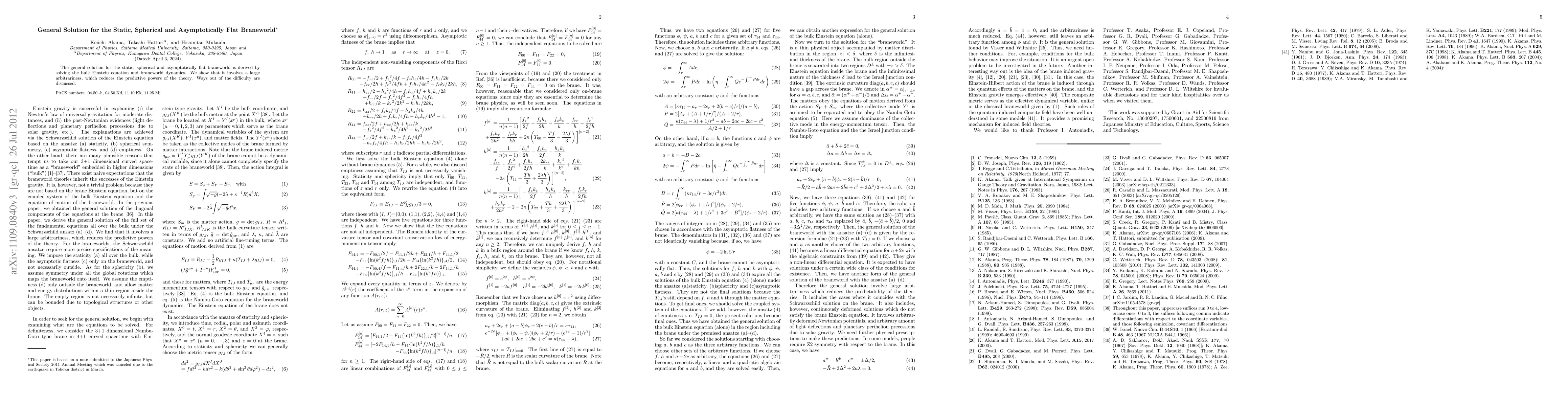 The general solution for the static, spherical and asymptotically flat braneworld is derived by solving the bulk Einstein equation and braneworld dynamics. We show that it involves a large arbitrariness, which reduces the predictability of the theory. Ways out of the difficulty are discussed.