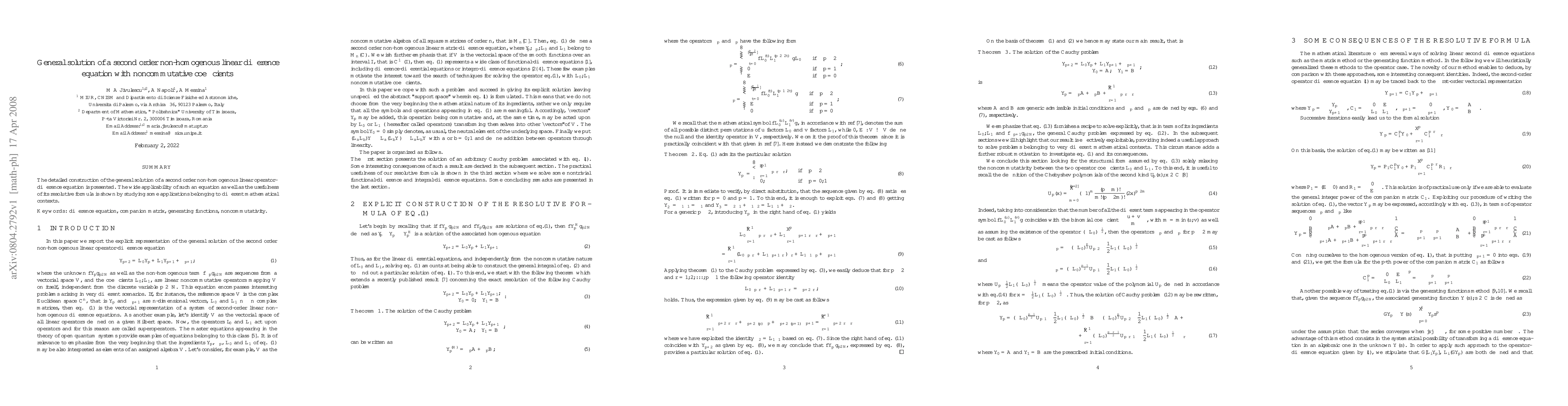 The detailed construction of the general solution of a second order non-homogenous linear operatordifference equation is presented. The wide applicability of such an equation as well as the usefulness of its resolutive formula is shown by studying some applications belonging to different mathematical contexts.