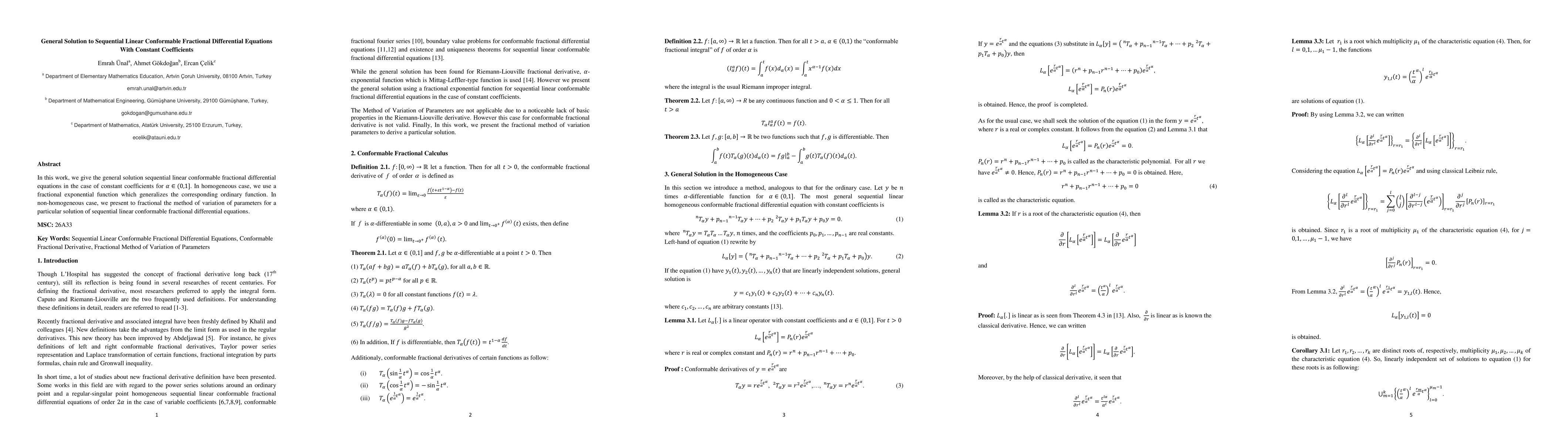 This paper presents a general solution for sequential linear conformable fractional differential equations with constant coefficients, utilizing a generalized fractional exponential function for homogeneous cases and a fractional variation of parameters method for non-homogeneous cases.