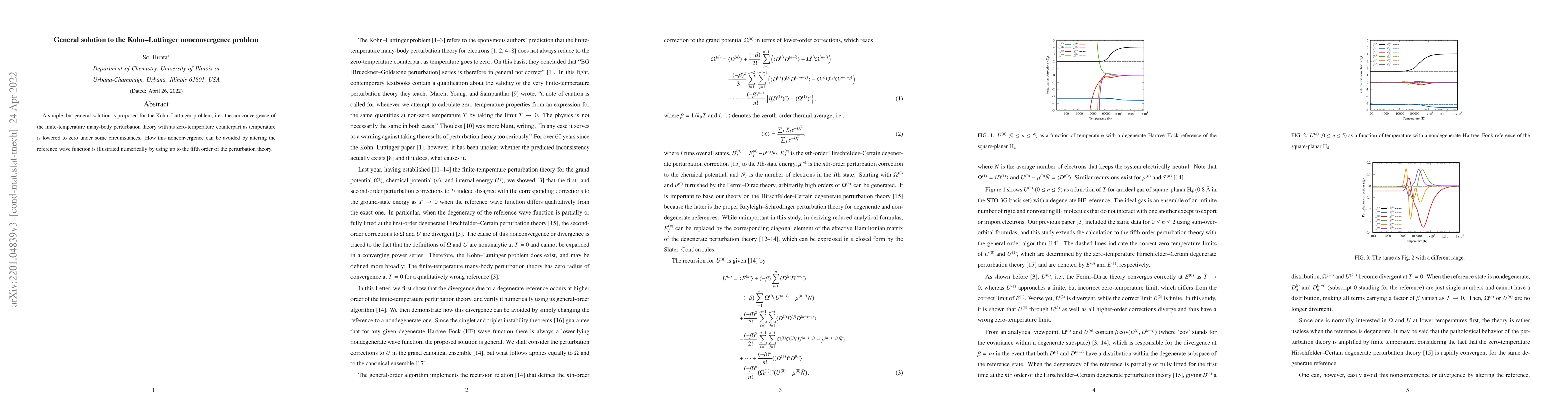 A simple, but general solution is proposed for the Kohn-Luttinger problem, i.e., the nonconvergence of the finite-temperature many-body perturbation theory with its zero-temperature counterpart as temperature is lowered to zero under some circumstances. How this nonconvergence can be avoided by altering the reference wave function is illustrated numerically by using up to the fifth order of the perturbation theory.
