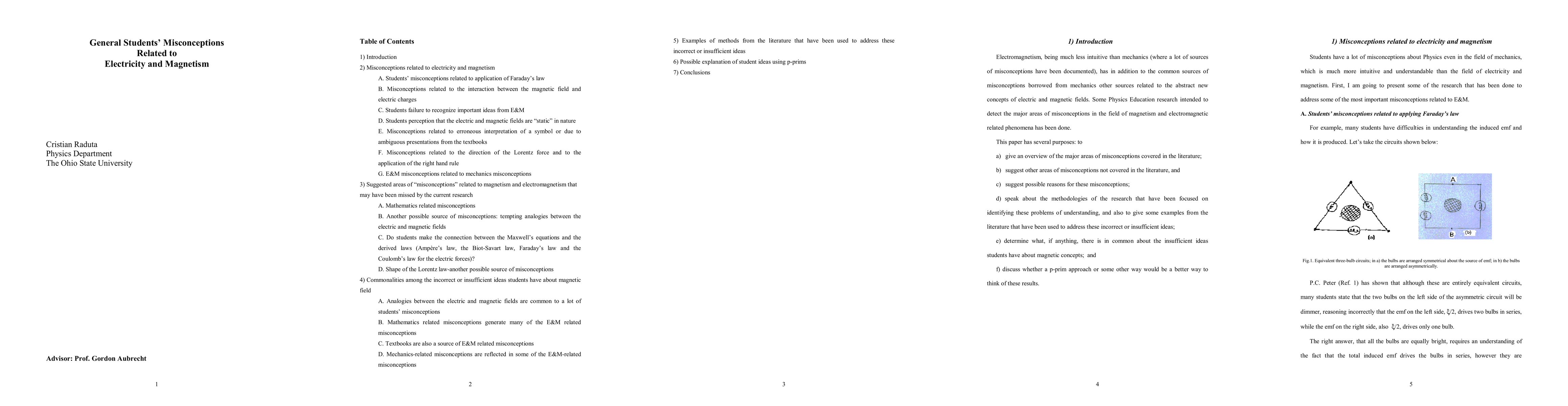 Research identifies common misconceptions related to Electricity and Magnetism among general students, including shape of Lorentz law, magnetic-electric field analogies, and mathematical misunderstandings. The study aims to provide a comprehensive overview of these misconceptions and potential explanations using p-prims.