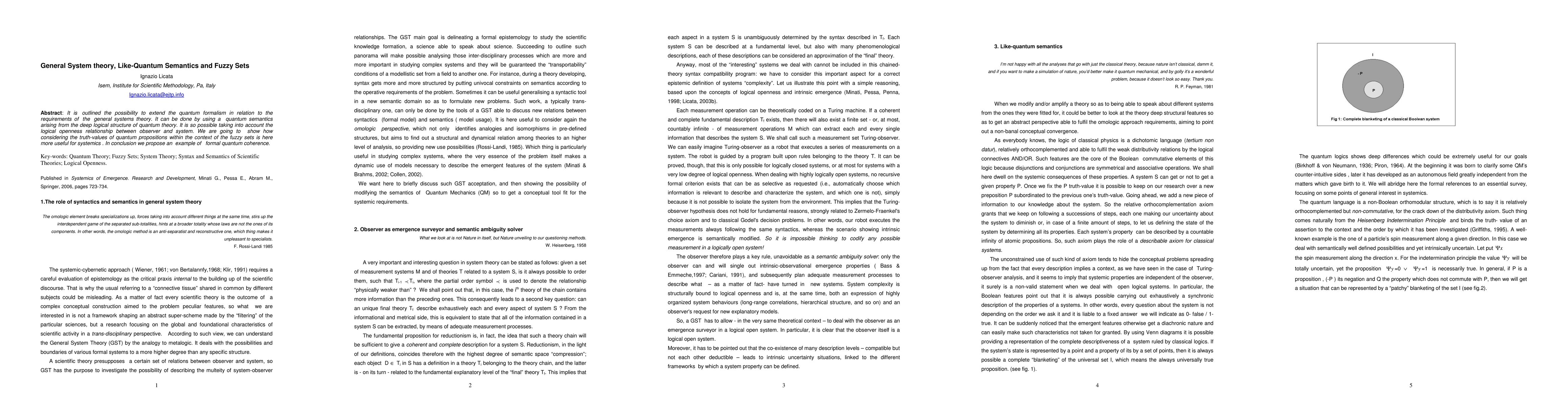 This paper explores extending quantum formalism to meet general systems theory needs using quantum semantics and fuzzy sets, demonstrating the logical openness between observer and system, and proposing a formal example of quantum coherence.