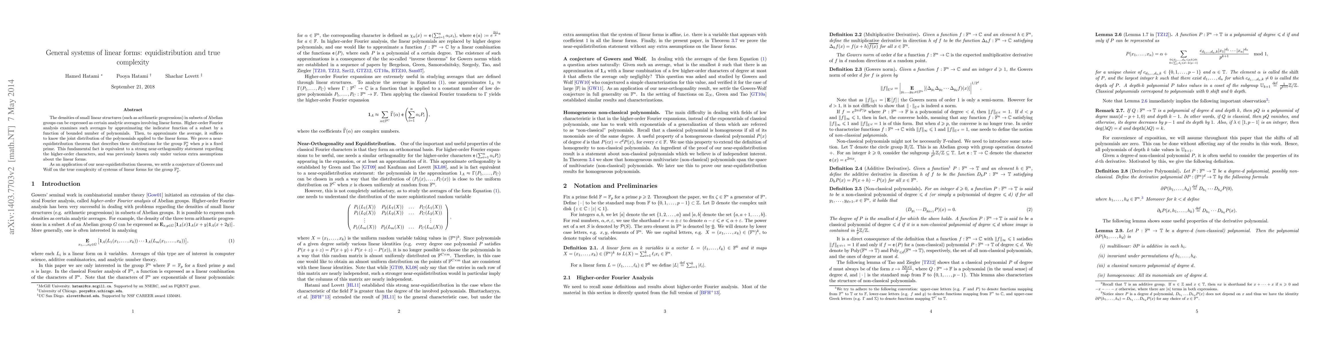 The densities of small linear structures (such as arithmetic progressions) in subsets of Abelian groups can be expressed as certain analytic averages involving linear forms. Higher-order Fourier analysis examines such averages by approximating the indicator function of a subset by a function of bounded number of polynomials. Then, to approximate the average, it suffices to know the joint distribution of the polynomials applied to the linear forms. We prove a near-equidistribution theorem that describes these distributions for the group $\mathbb{F}_p^n$ when $p$ is a fixed prime. This fundamental fact is equivalent to a strong near-orthogonality statement regarding the higher-order characters, and was previously known only under various extra assumptions about the linear forms. As an application of our near-equidistribution theorem, we settle a conjecture of Gowers and Wolf on the true complexity of systems of linear forms for the group $\mathbb{F}_p^n$.