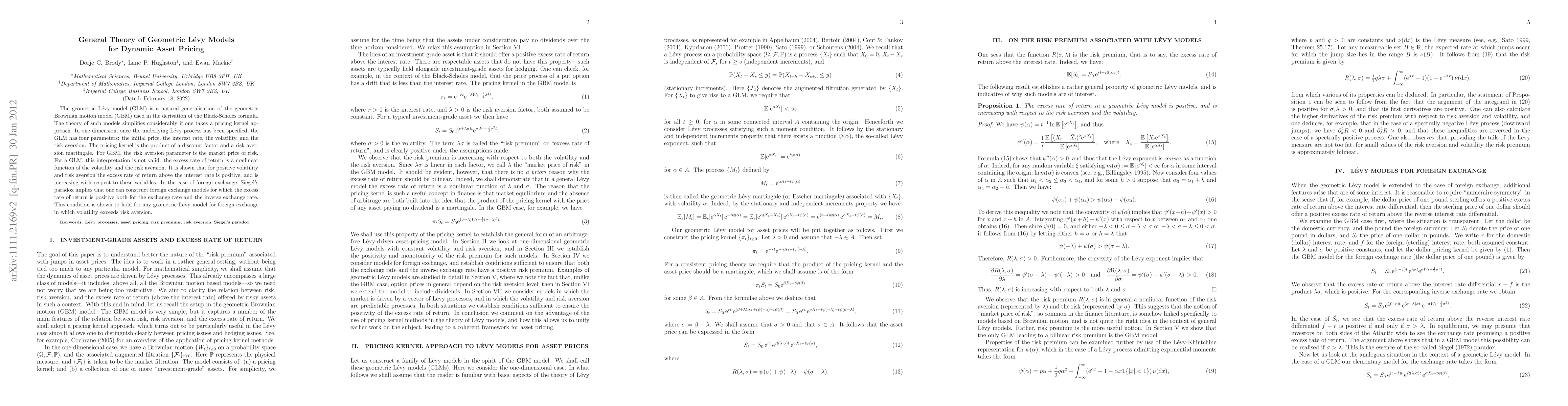 This paper introduces a general theory for geometric Lévy models in dynamic asset pricing, showing that excess returns above interest rates can be positive and increasing with volatility and risk aversion.