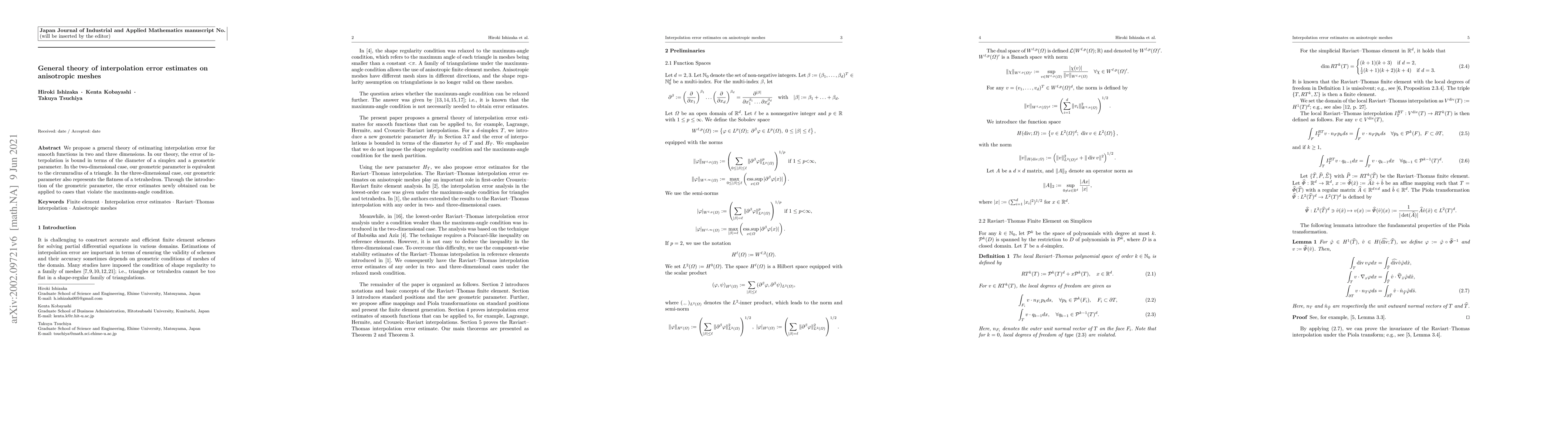 We propose a general theory of estimating interpolation error for smooth functions in two and three dimensions. In our theory, the error of interpolation is bound in terms of the diameter of a simplex and a geometric parameter. In the two-dimensional case, our geometric parameter is equivalent to the circumradius of a triangle. In the three-dimensional case, our geometric parameter also represents the flatness of a tetrahedron. Through the introduction of the geometric parameter, the error estimates newly obtained can be applied to cases that violate the maximum-angle condition.