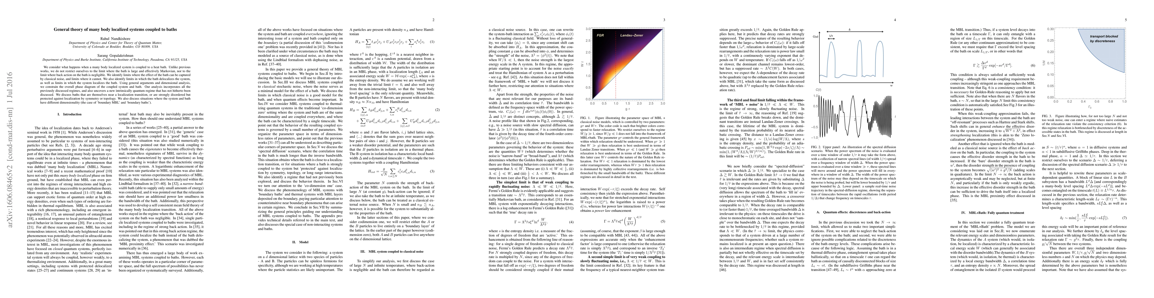We consider what happens when a many body localized system is coupled to a heat bath. Unlike previous works, we do not restrict ourselves to the limit where the bath is large and effectively Markovian, nor to the limit where back action on the bath is negligible. We identify limits where the effect of the bath can be captured by classical noise, and limits where it cannot. We also identify limits in which the bath delocalizes the system, as well as limits in which the system localizes the bath. Using general arguments and dimensional analysis, we constrain the overall phase diagram of the coupled system and bath. Our analysis incorporates all the previously discussed regimes, and also uncovers a new intrinsically quantum regime that has not hitherto been discussed. We discuss baths that are themselves near a localization transition, or are strongly disordered but protected against localization by symmetry or topology. We also discuss situations where the system and bath have different dimensionality (the case of `boundary MBL' and `boundary baths').