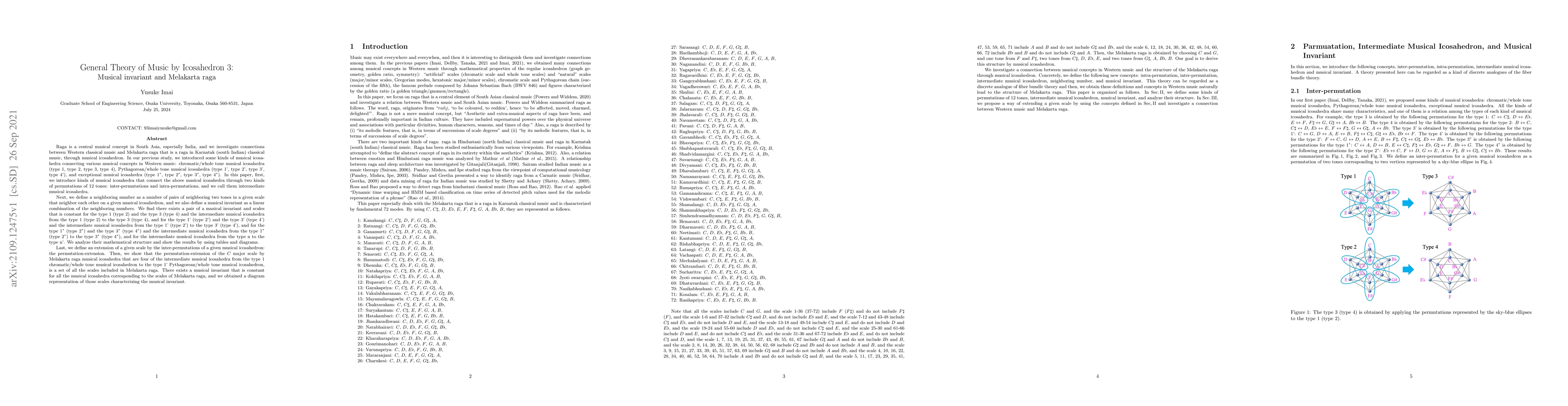 This paper explores connections between Western classical music and South Indian classical music (Melakarta raga) via musical icosahedra, introducing intermediate musical icosahedra and defining musical invariants. It demonstrates that the permutation-extension of the C major scale using specific musical icosahedra generates all scales of Melakarta raga, revealing a constant musical invariant across these scales.