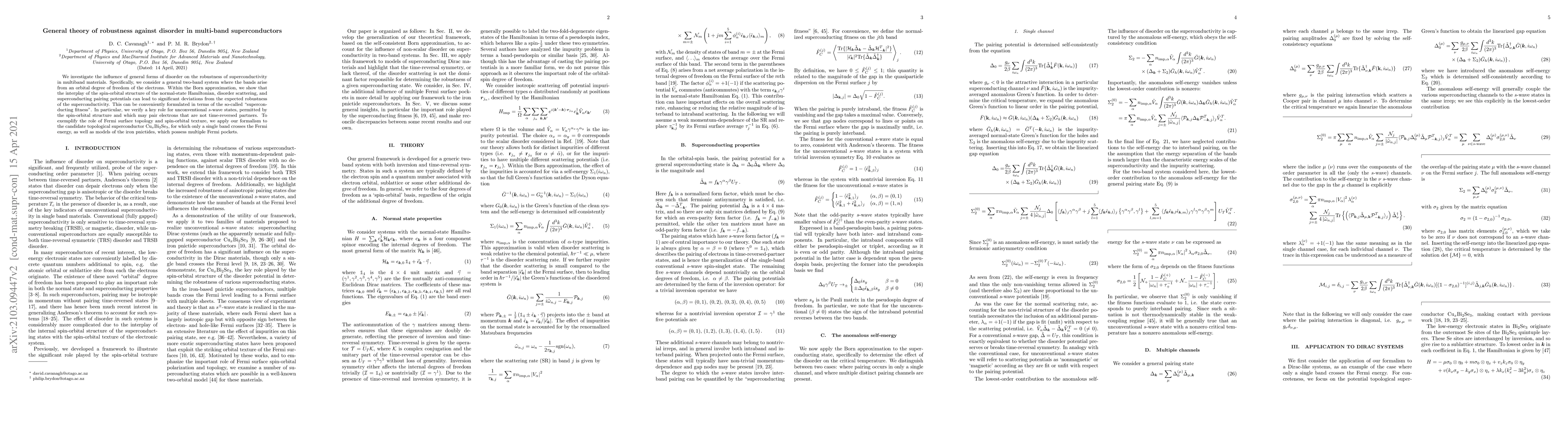 This paper explores the robustness of superconductivity in multiband systems under disorder, revealing that the spin-orbital structure and unconventional pairing can significantly affect superconducting stability. The study applies these findings to materials like Cu$_x$Bi$_2$Se$_3$ and iron pnictides, highlighting the importance of Fermi surface topology and spin-orbital texture.
