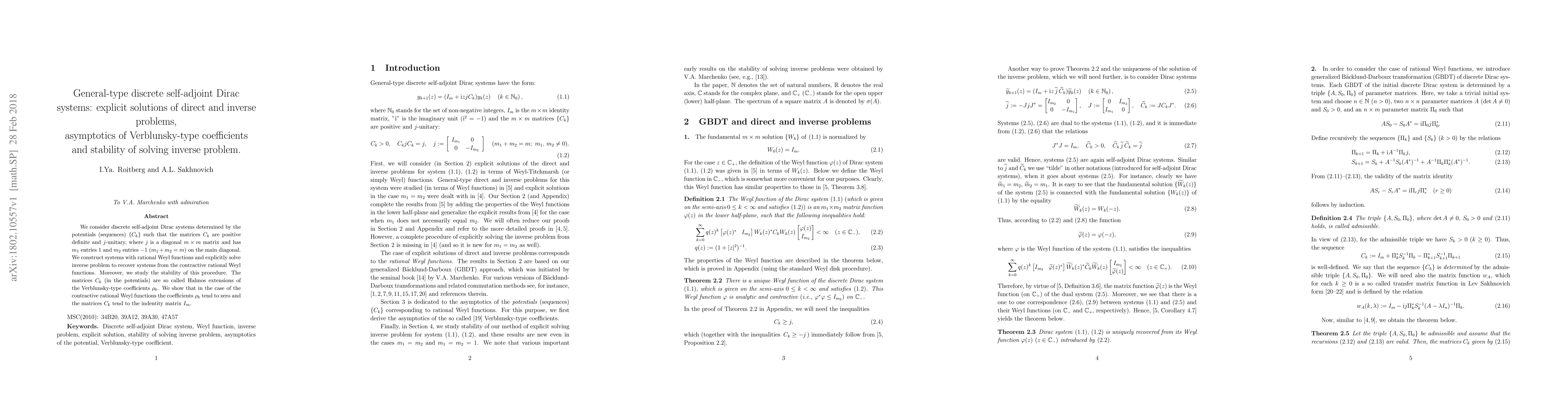 We consider discrete self-adjoint Dirac systems determined by the potentials (sequences) $\{C_k\}$ such that the matrices $C_k$ are positive definite and $j$-unitary, where $j$ is a diagonal $m\times m$ matrix and has $m_1$ entries $1$ and $m_2$ entries $-1$ ($m_1+m_2=m$) on the main diagonal. We construct systems with rational Weyl functions and explicitly solve inverse problem to recover systems from the contractive rational Weyl functions. Moreover, we study the stability of this procedure. The matrices $C_k$ (in the potentials) are so called Halmos extensions of the Verblunsky-type coefficients $\rho_k$. We show that in the case of the contractive rational Weyl functions the coefficients $\rho_k$ tend to zero and the matrices $C_k$ tend to the indentity matrix $I_m$.