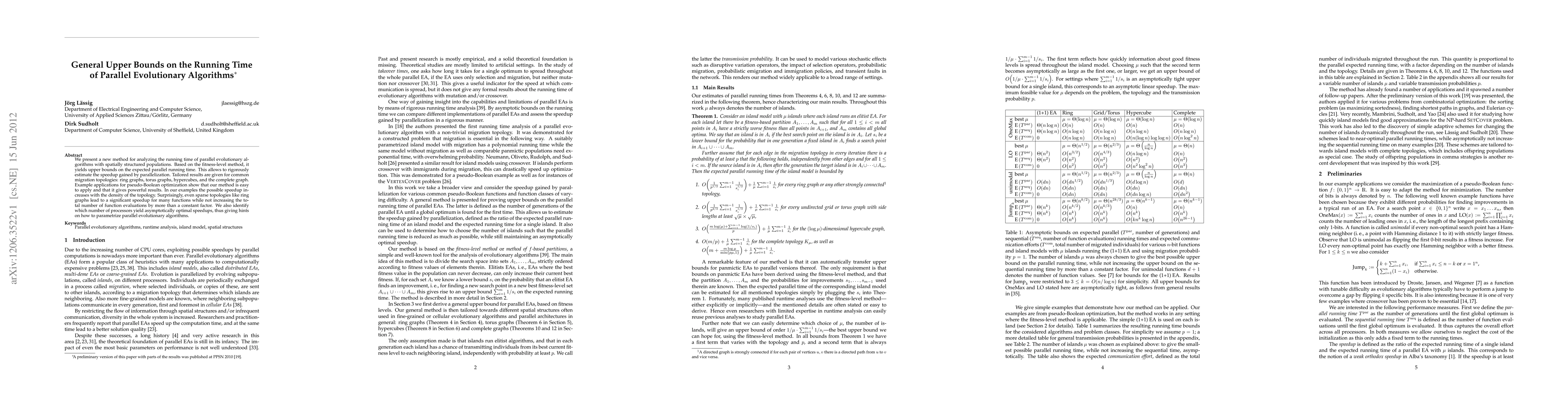 This paper introduces a new analytical method for estimating the running time of parallel evolutionary algorithms, providing upper bounds on expected parallel running time based on the fitness-level method. The method is shown to yield significant speedups, especially with dense topologies, and identifies optimal processor numbers for maximizing these speedups.