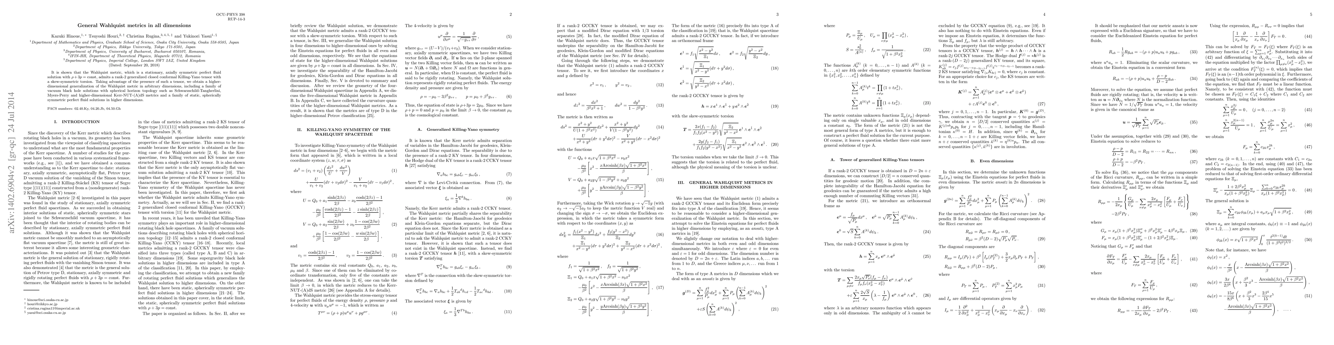 It is shown that the Wahlquist metric, which is a stationary, axially symmetric perfect fluid solution with $\rho+3p=\text{const.}$, admits a rank-2 generalized closed conformal Killing-Yano tensor with a skew-symmetric torsion. Taking advantage of the presence of such a tensor, we obtain a higher-dimensional generalization of the Wahlquist metric in arbitrary dimensions, including a family of vacuum black hole solutions with spherical horizon topology such as Schwarzschild-Tangherlini, Myers-Perry and higher-dimensional Kerr-NUT-(A)dS metrics and a family of static, spherically symmetric perfect fluid solutions in higher dimensions.