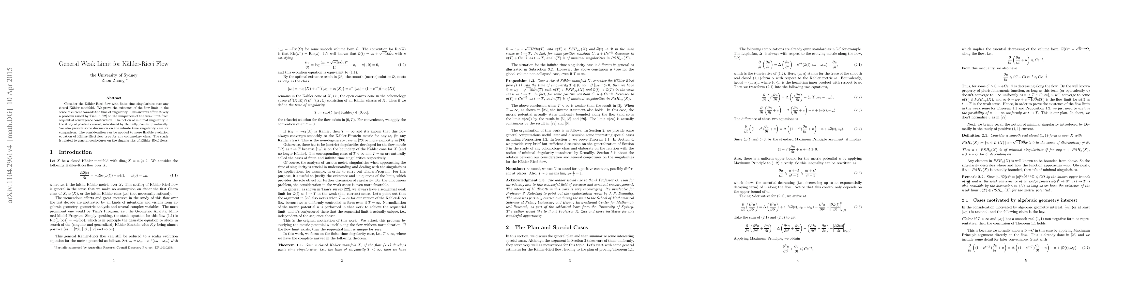 This paper proves the existence of a weak limit for the Kahler-Ricci flow towards its finite time singularity, affirming Tian's conjecture on the uniqueness of this limit. It introduces the concept of minimal singularities in positive current studies and extends its findings to more flexible evolution equations of Kahler-Ricci flow type.