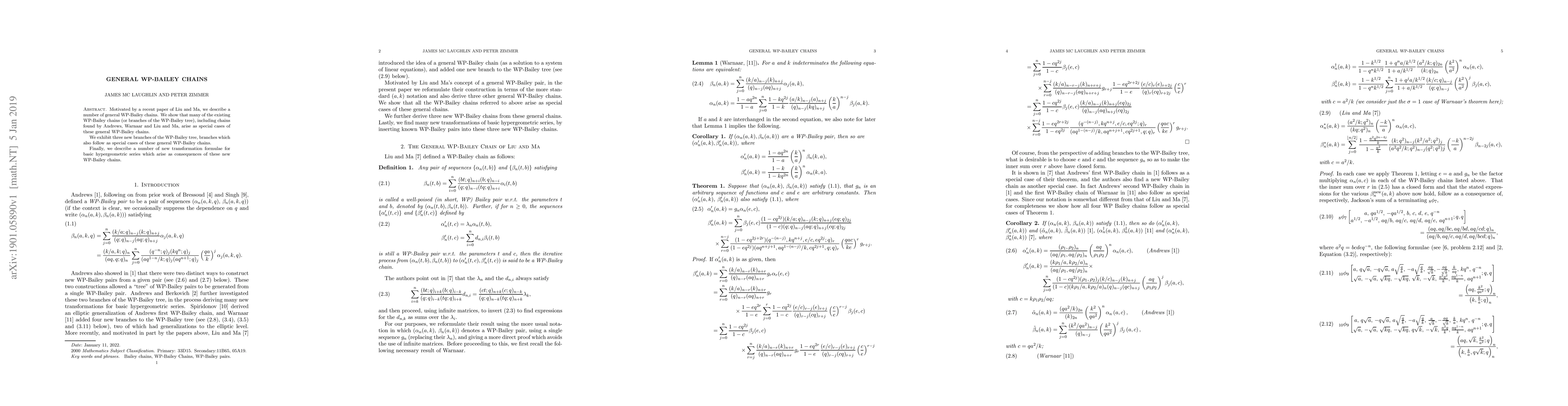 Motivated by a recent paper of Liu and Ma, we describe a number of general WP-Bailey chains. We show that many of the existing WP-Bailey chains (or branches of the WP-Bailey tree), including chains found by Andrews, Warnaar and Liu and Ma, arise as special cases of these general WP-Bailey chains. We exhibit three new branches of the WP-Bailey tree, branches which also follow as special cases of these general WP-Bailey chains. Finally, we describe a number of new transformation formulae for basic hypergeometric series which arise as consequences of these new WP-Bailey chains.
