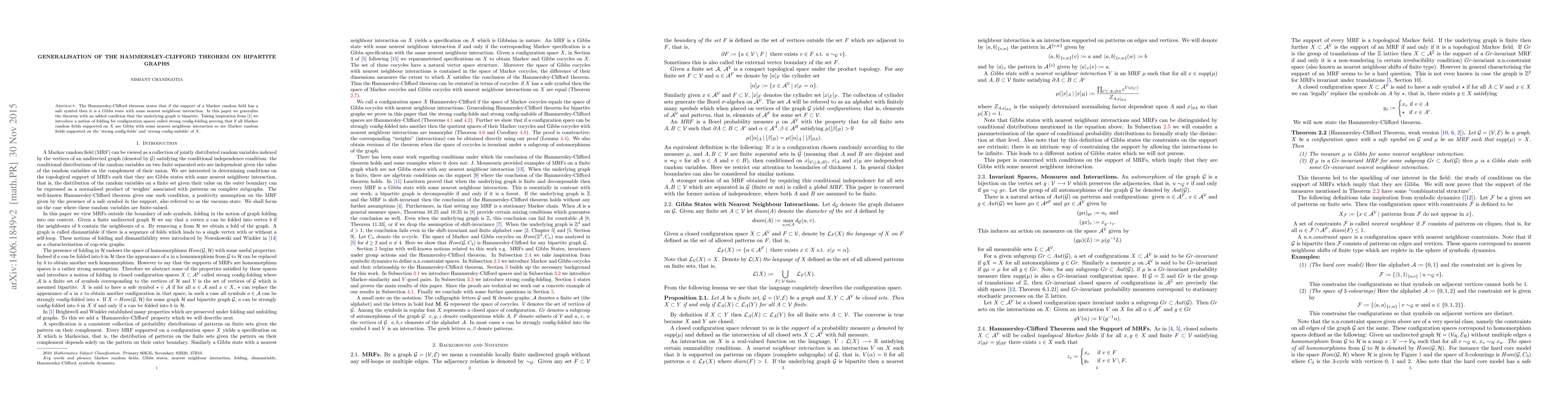 The Hammersley-Clifford theorem states that if the support of a Markov random field has a safe symbol then it is a Gibbs state with some nearest neighbour interaction. In this paper we generalise the theorem with an added condition that the underlying graph is bipartite. Taking inspiration from "Gibbs Measures and Dismantlable Graphs" by Brightwell and Winkler we introduce a notion of folding for configuration spaces called strong config-folding proving that if all Markov random fields supported on $X$ are Gibbs with some nearest neighbour interaction so are Markov random fields supported on the 'strong config-folds' and 'strong config-unfolds' of $X$.