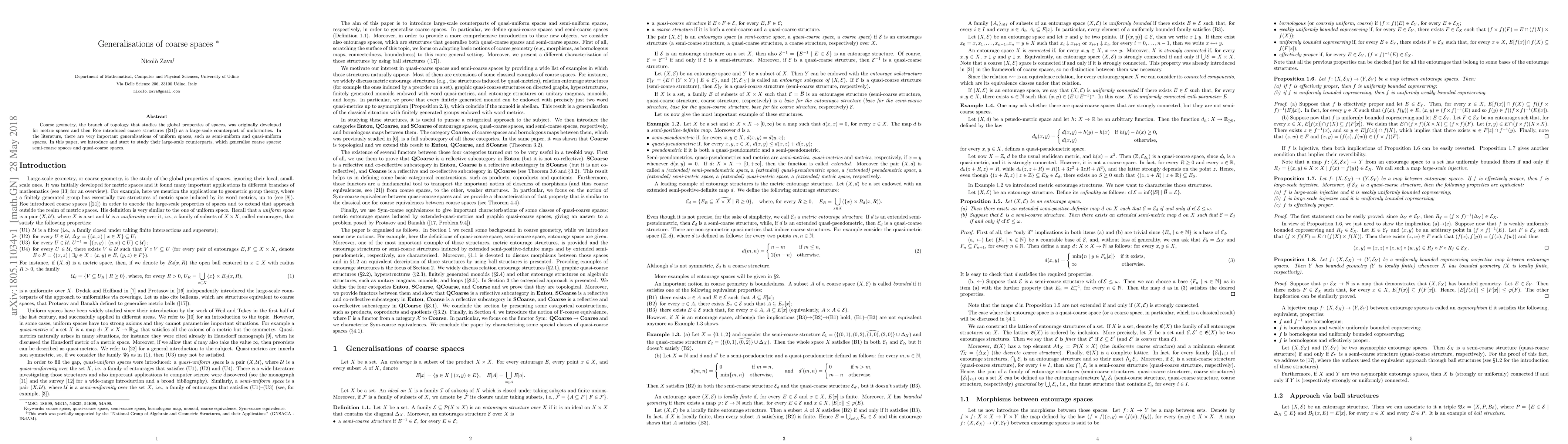 Coarse geometry, the branch of topology that studies the global properties of spaces, was originally developed for metric spaces and then Roe introduced coarse structures as a large-scale counterpart of uniformities. In the literature, there are very important generalisations of uniform spaces, such as semi-uniform and quasi-uniform spaces. In this paper, we introduce and start to study their large-scale counterparts, which generalise coarse spaces: semi-coarse spaces and quasi-coarse spaces.