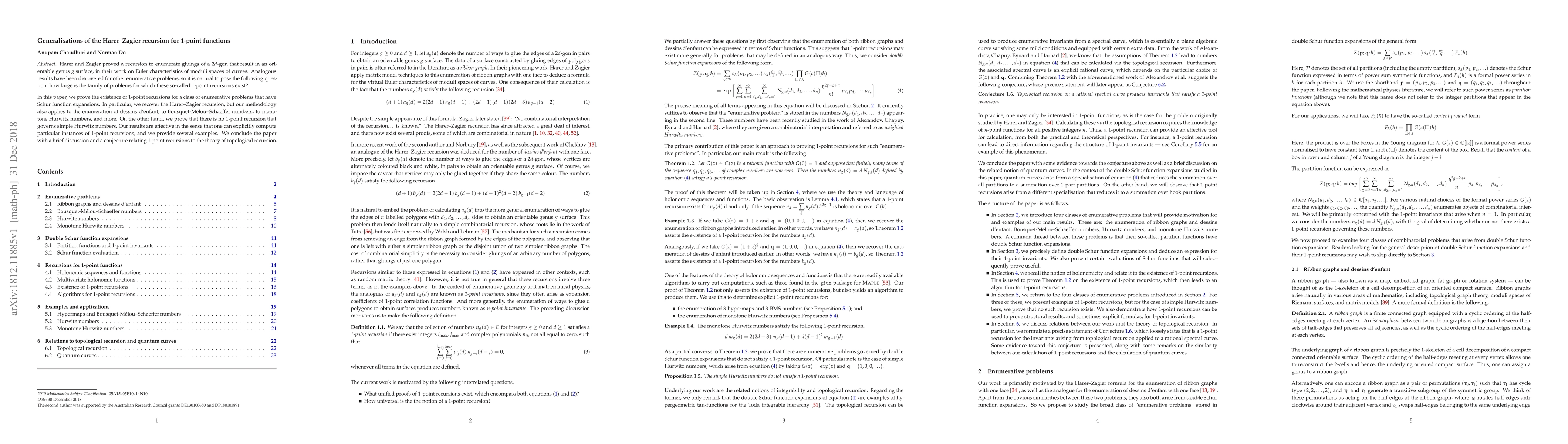 Harer and Zagier proved a recursion to enumerate gluings of a $2d$-gon that result in an orientable genus $g$ surface, in their work on Euler characteristics of moduli spaces of curves. Analogous results have been discovered for other enumerative problems, so it is natural to pose the following question: how large is the family of problems for which these so-called 1-point recursions exist? In this paper, we prove the existence of 1-point recursions for a class of enumerative problems that have Schur function expansions. In particular, we recover the Harer-Zagier recursion, but our methodology also applies to the enumeration of dessins d'enfant, to Bousquet-M\'{e}lou-Schaeffer numbers, to monotone Hurwitz numbers, and more. On the other hand, we prove that there is no 1-point recursion that governs simple Hurwitz numbers. Our results are effective in the sense that one can explicitly compute particular instances of 1-point recursions, and we provide several examples. We conclude the paper with a brief discussion and a conjecture relating 1-point recursions to the theory of topological recursion.