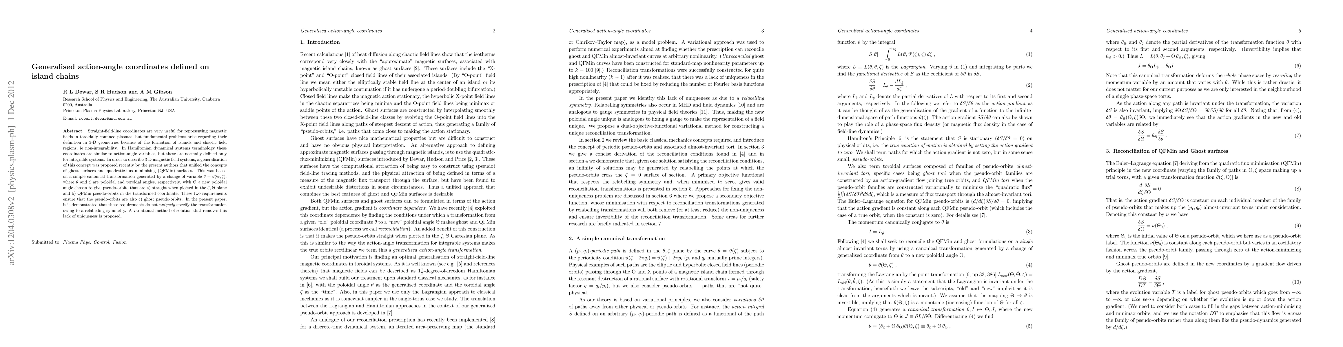 Straight-field-line coordinates are very useful for representing magnetic fields in toroidally confined plasmas, but fundamental problems arise regarding their definition in 3-D geometries because of the formation of islands and chaotic field regions, ie non-integrability. In Hamiltonian dynamical systems terms these coordinates are a form of action-angle variables, which are normally defined only for integrable systems. In order to describe 3-D magnetic field systems, a generalisation of this concept was proposed recently by the present authors that unified the concepts of ghost surfaces and quadratic-flux-minimising (QFMin) surfaces. This was based on a simple canonical transformation generated by a change of variable $\theta = \theta(\Theta,\zeta)$, where $\theta$ and $\zeta$ are poloidal and toroidal angles, respectively, with $\Theta$ a new poloidal angle chosen to give pseudo-orbits that are a) straight when plotted in the $\zeta,\Theta$ plane and b) QFMin pseudo-orbits in the transformed coordinate. These two requirements ensure that the pseudo-orbits are also c) ghost pseudo-orbits. In the present paper, it is demonstrated that these requirements do not \emph{uniquely} specify the transformation owing to a relabelling symmetry. A variational method of solution that removes this lack of uniqueness is proposed.