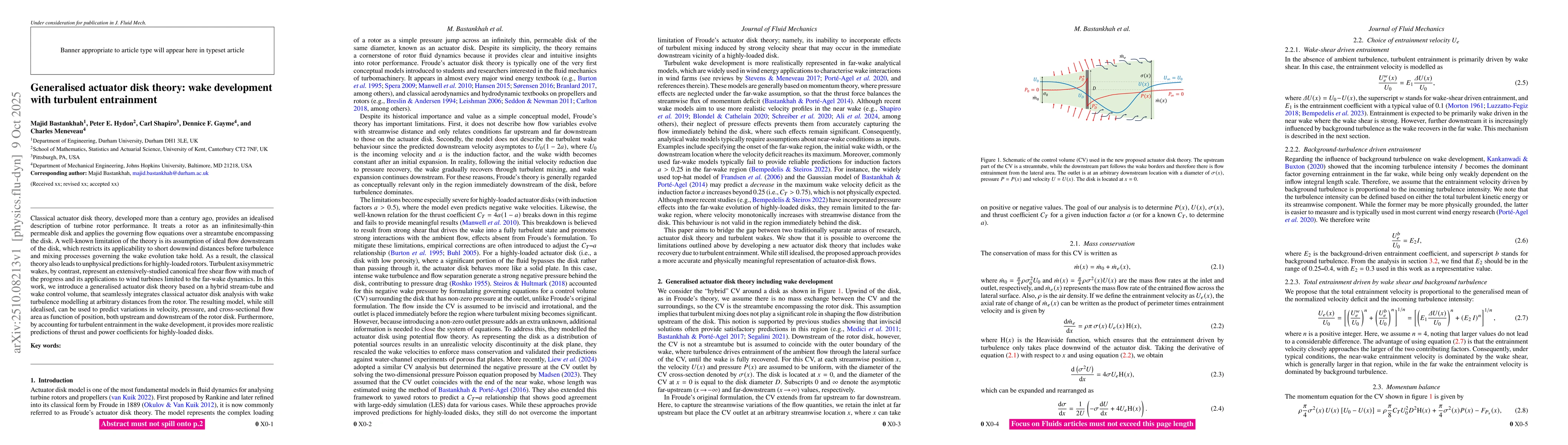 The study presents a new analytical model for wind turbine wakes, incorporating turbulent entrainment effects and using a control volume approach to derive closure relations. It combines theoretical analysis with numerical simulations to validate the model's predictions.