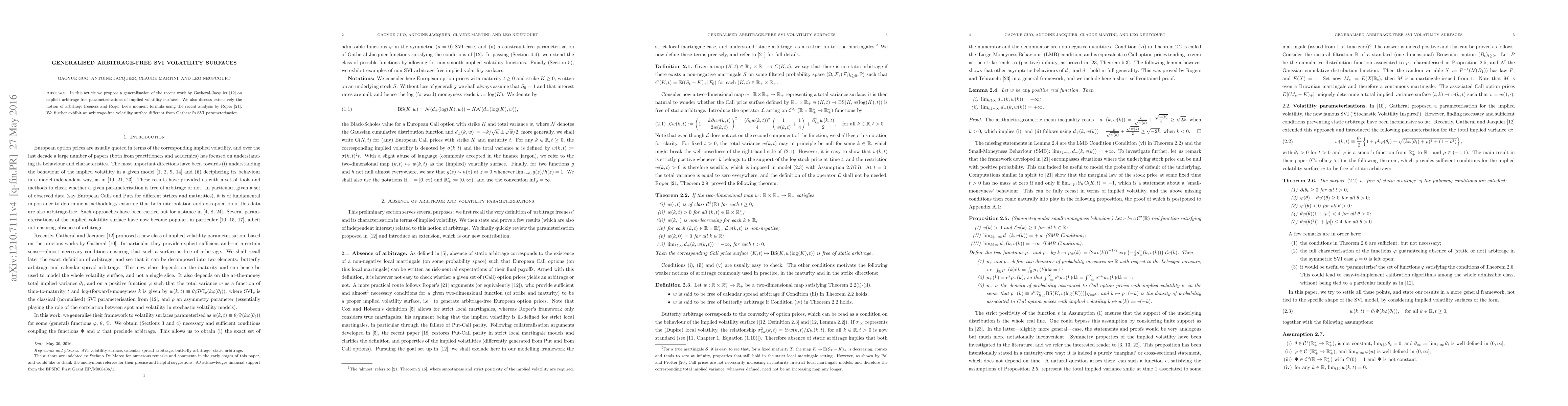 This paper generalises the arbitrage-free SVI volatility surface model proposed by Gatheral and Jacquier, introducing a new arbitrage-free parameterization and discussing the concept of arbitrage-freeness with reference to Roger Lee's moment formula and Roper's analysis.