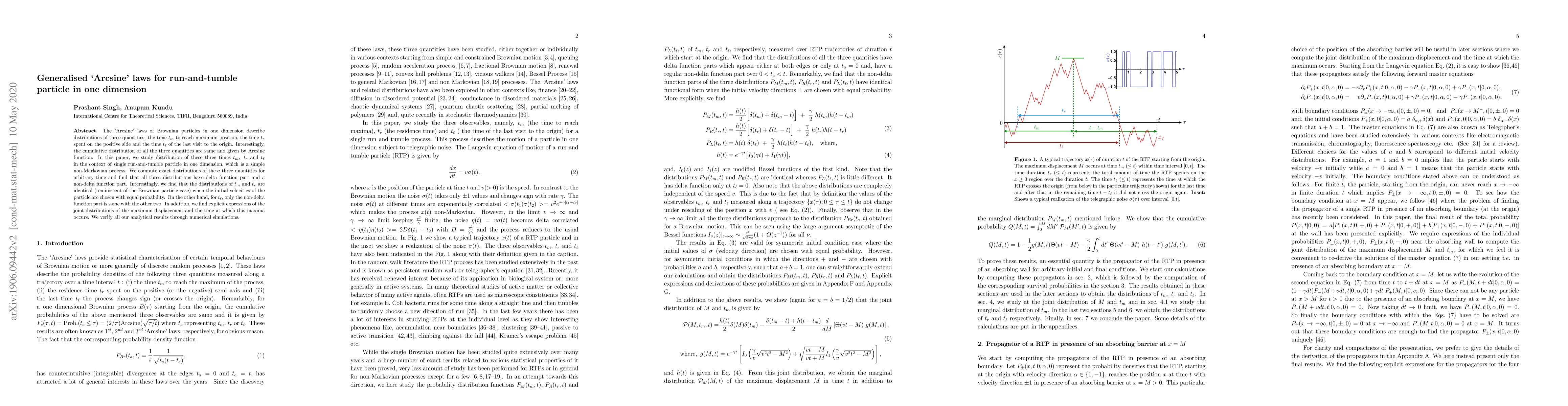 This paper investigates the distribution of three key times for a run-and-tumble particle in one dimension, finding that $t_m$ and $t_r$ share identical distributions under equal initial velocity probabilities, while $t_\ell$ differs. Analytical results are corroborated by numerical simulations.
