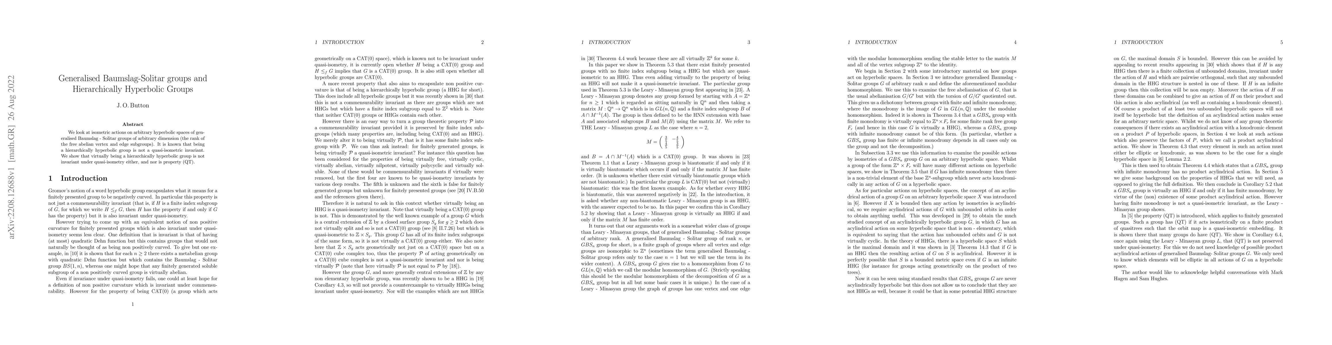 We look at isometric actions on arbitrary hyperbolic spaces of generalised Baumslag - Solitar groups of arbitrary dimension (the rank of the free abelian vertex and edge subgroups). It is known that being a hierarchically hyperbolic group is not a quasi-isometric invariant. We show that virtually being a hierarchically hyperbolic group is not invariant under quasi-isometry either, and nor is property (QT).