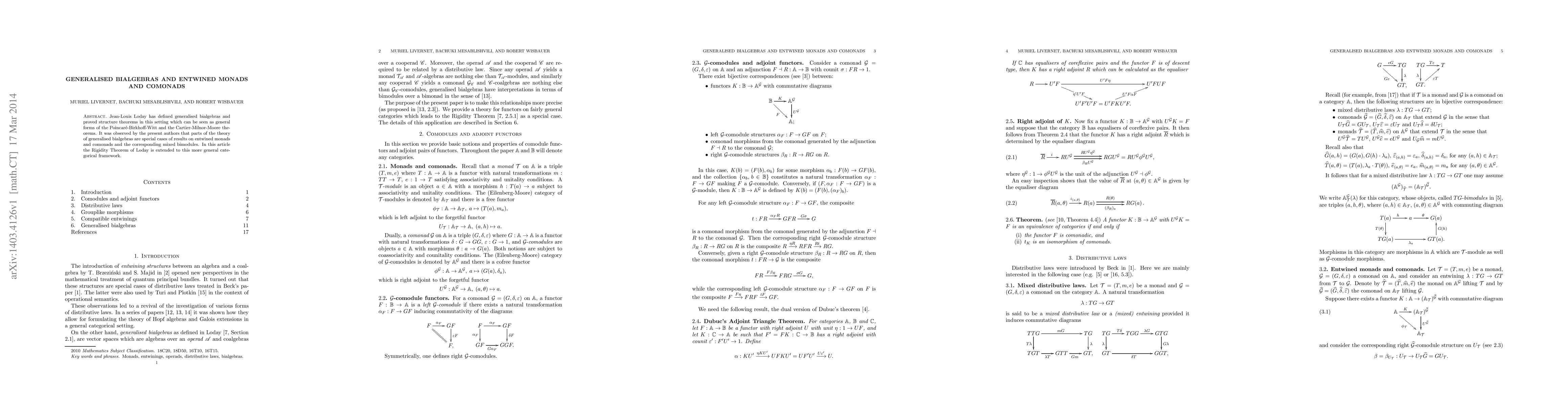 This paper extends Jean-Louis Loday's structure theorems for generalised bialgebras to entwined monads and comonads, showing that parts of Loday's theory are special cases of categorical results, and applies Loday's Rigidity Theorem within this broader framework.