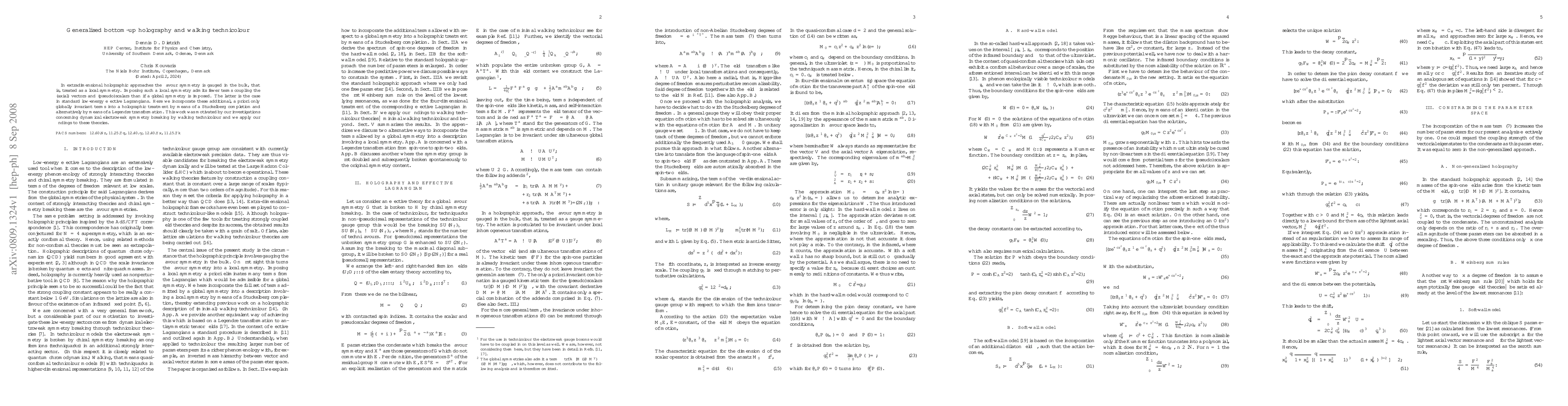 This paper explores extradimensional holographic models where flavour symmetry is treated as a local bulk symmetry, incorporating globally invariant terms via Stueckelberg completion and Legendre transformation. The findings are applied to theories of dynamical electroweak symmetry breaking through walking technicolour.