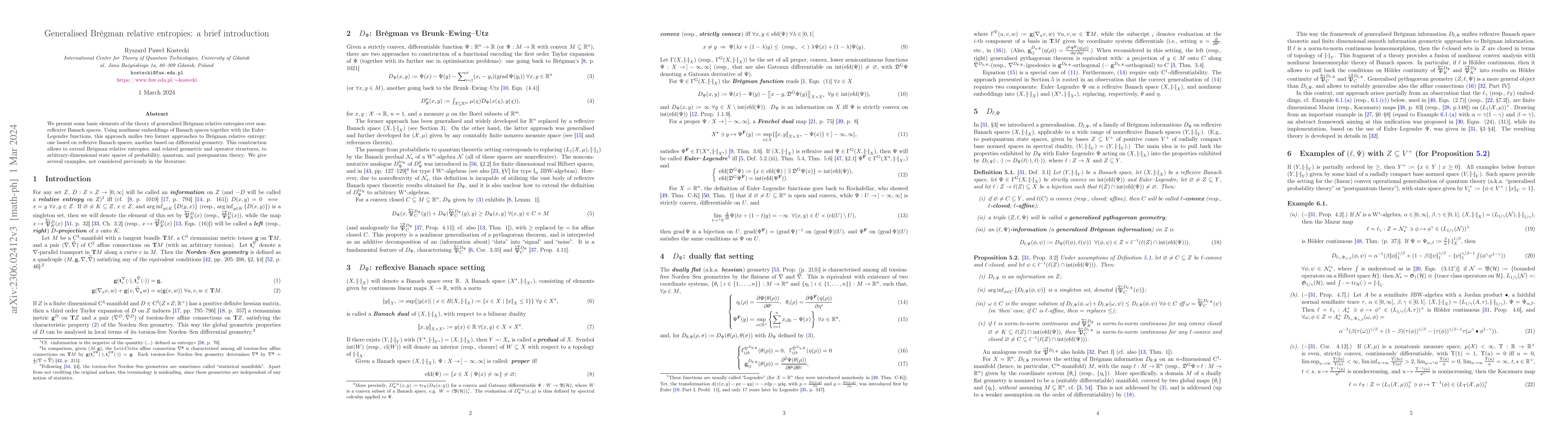 This paper introduces generalised Brégman relative entropies over nonreflexive Banach spaces, unifying previous approaches from reflexive Banach spaces and differential geometry using nonlinear embeddings and Euler-Legendre functions. It extends Brégman relative entropies to arbitrary-dimensional state spaces in probability, quantum, and postquantum theory, with novel examples.