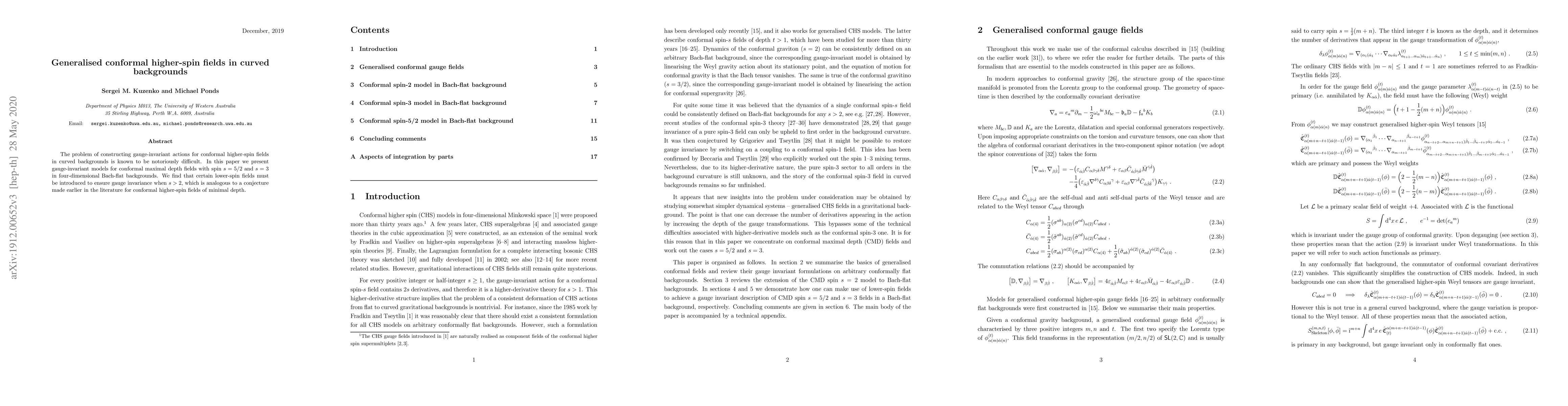 This paper constructs gauge-invariant actions for conformal higher-spin fields in curved backgrounds, specifically for fields with spin $s=5/2$ and $s=3$ in four-dimensional Bach-flat spaces, introducing lower-spin fields to ensure invariance when $s>2$. This approach parallels earlier conjectures regarding minimal depth conformal higher-spin fields.