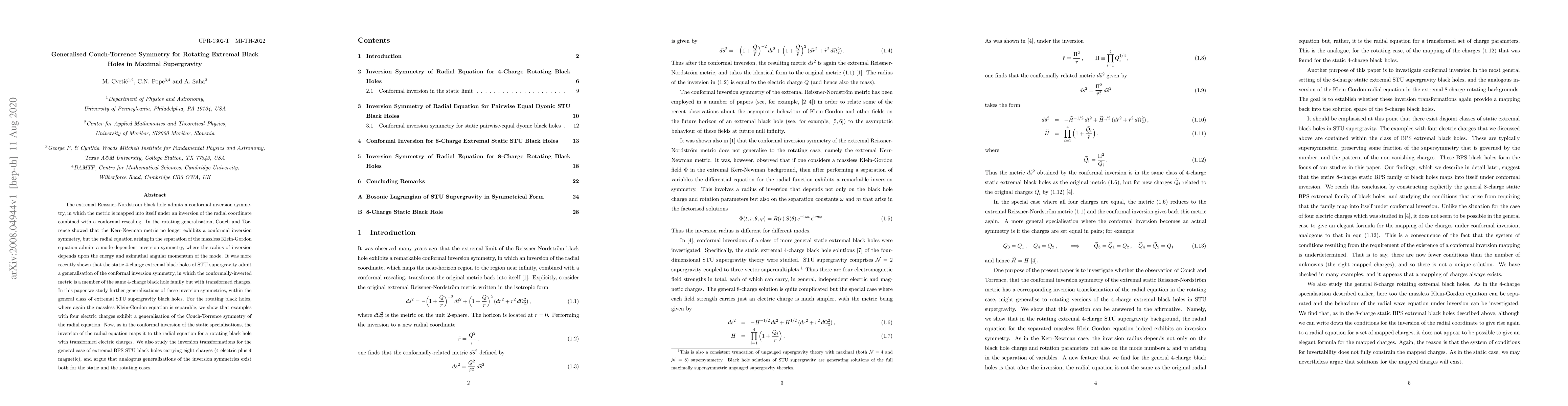 The extremal Reissner-Nordstr\"om black hole admits a conformal inversion symmetry, in which the metric is mapped into itself under an inversion of the radial coordinate combined with a conformal rescaling. In the rotating generalisation, Couch and Torrence showed that the Kerr-Newman metric no longer exhibits a conformal inversion symmetry, but the radial equation arising in the separation of the massless Klein-Gordon equation admits a mode-dependent inversion symmetry, where the radius of inversion depends upon the energy and azimuthal angular momentum of the mode. It was more recently shown that the static 4-charge extremal black holes of STU supergravity admit a generalisation of the conformal inversion symmetry, in which the conformally-inverted metric is a member of the same 4-charge black hole family but with transformed charges. In this paper we study further generalisations of these inversion symmetries, within the general class of extremal STU supergravity black holes. For the rotating black holes, where again the massless Klein-Gordon equation is separable, we show that examples with four electric charges exhibit a generalisation of the Couch-Torrence symmetry of the radial equation. Now, as in the conformal inversion of the static specialisations, the inversion of the radial equation maps it to the radial equation for a rotating black hole with transformed electric charges. We also study the inversion transformations for the general case of extremal BPS STU black holes carrying eight charges (4 electric plus 4 magnetic), and argue that analogous generalisations of the inversion symmetries exist both for the static and the rotating cases.