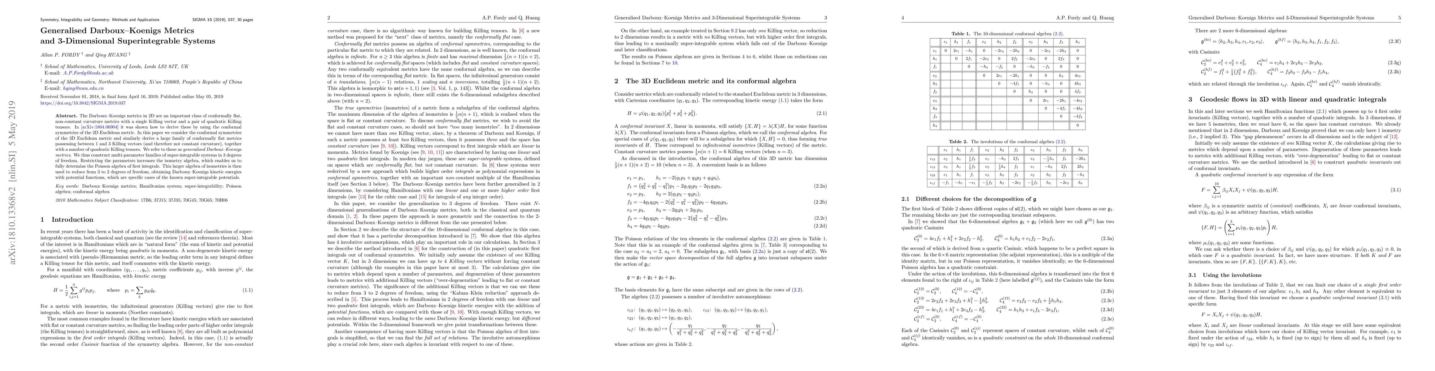 The Darboux-Koenigs metrics in 2D are an important class of conformally flat, non-constant curvature metrics with a single Killing vector and a pair of quadratic Killing tensors. In [arXiv:1804.06904] it was shown how to derive these by using the conformal symmetries of the 2D Euclidean metric. In this paper we consider the conformal symmetries of the 3D Euclidean metric and similarly derive a large family of conformally flat metrics possessing between 1 and 3 Killing vectors (and therefore not constant curvature), together with a number of quadratic Killing tensors. We refer to these as generalised Darboux-Koenigs metrics. We thus construct multi-parameter families of super-integrable systems in 3 degrees of freedom. Restricting the parameters increases the isometry algebra, which enables us to fully determine the Poisson algebra of first integrals. This larger algebra of isometries is then used to reduce from 3 to 2 degrees of freedom, obtaining Darboux-Koenigs kinetic energies with potential functions, which are specific cases of the known super-integrable potentials.