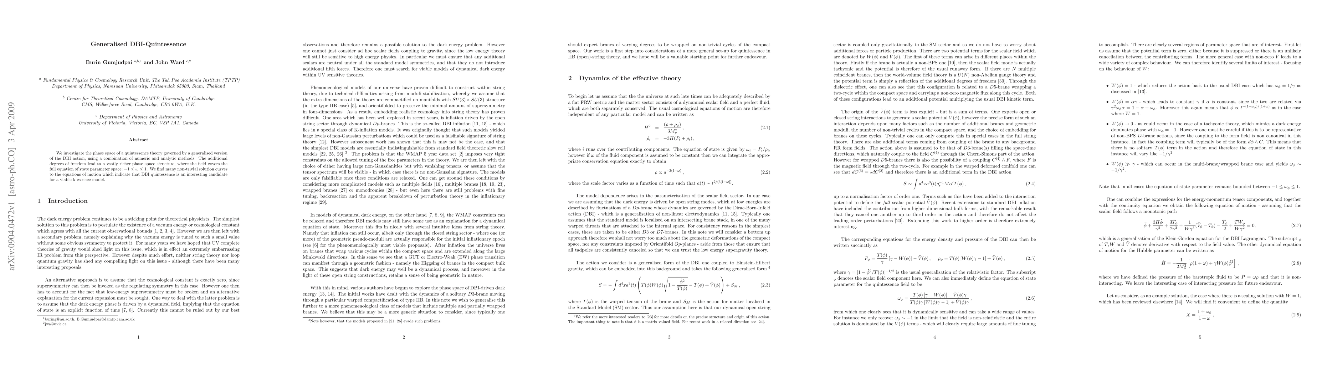 We investigate the phase space of a quintessence theory governed by a generalised version of the DBI action, using a combination of numeric and analytic methods. The additional degrees of freedom lead to a vastly richer phase space structure, where the field covers the full equation of state parameter space; $-1 \le \omega \le 1$. We find many non-trivial solution curves to the equations of motion which indicate that DBI quintessence is an interesting candidate for a viable k-essence model.