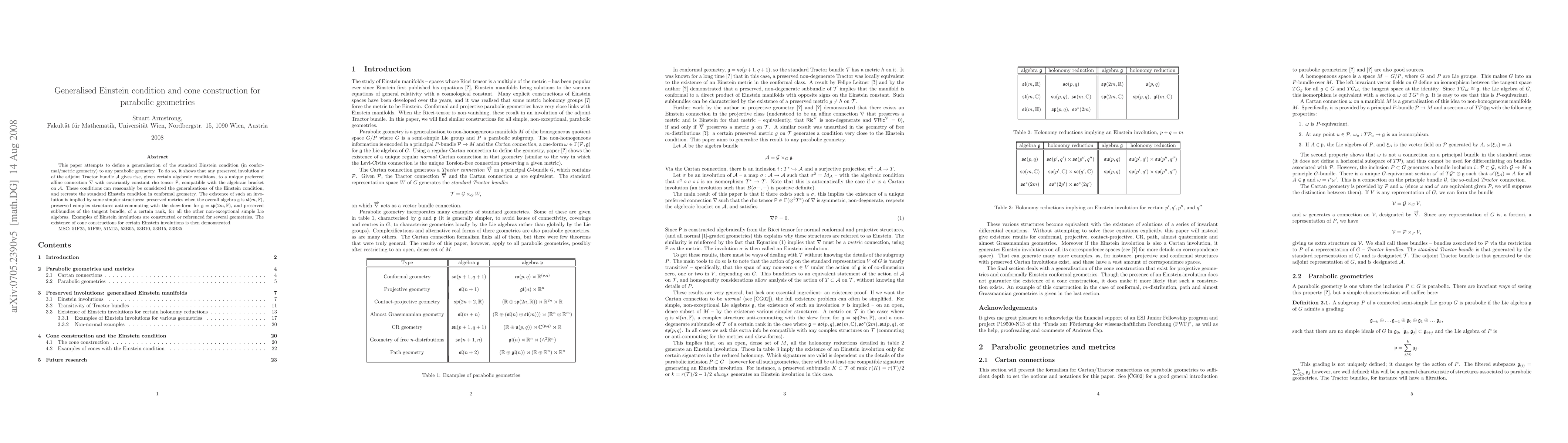 This paper generalises the Einstein condition to parabolic geometries by defining a preferred affine connection with a covariantly constant rho-tensor, compatible with the algebraic structure. It demonstrates the existence of such connections through preserved involutions and structures for various Lie algebras.