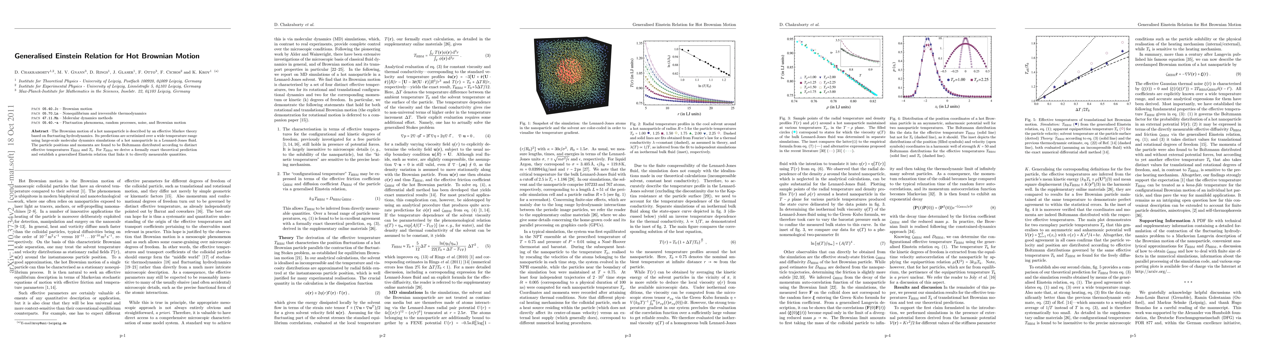 This paper investigates the Brownian motion of hot nanoparticles using fluctuating hydrodynamics and molecular dynamics simulations, revealing distinct effective temperatures for particle positions and momenta. It proposes a generalised Einstein relation linking these temperatures to measurable quantities, providing a theoretically exact prediction.