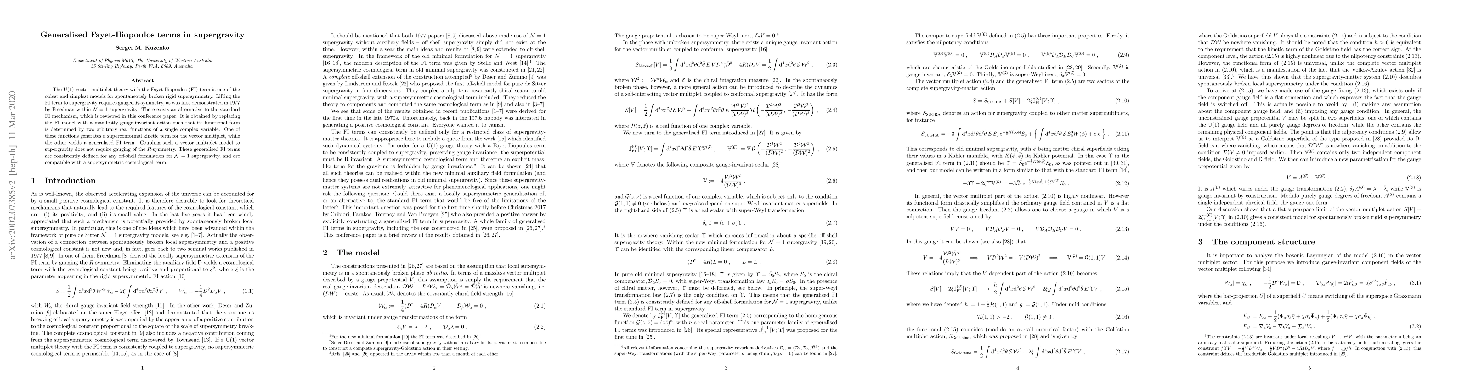 The U(1) vector multiplet theory with the Fayet-Iliopoulos (FI) term is one of the oldest and simplest models for spontaneously broken rigid supersymmetry. Lifting the FI term to supergravity requires gauged $R$-symmetry, as was first demonstrated in 1977 by Freedman within ${\cal N}=1$ supergravity. There exists an alternative to the standard FI mechanism, which is reviewed in this conference paper. It is obtained by replacing the FI model with a manifestly gauge-invariant action such that its functional form is determined by two arbitrary real functions of a single complex variable. One of these functions generates a superconformal kinetic term for the vector multiplet, while the other yields a generalised FI term. Coupling such a vector multiplet model to supergravity does not require gauging of the $R$-symmetry. These generalised FI terms are consistently defined for any off-shell formulation for ${\cal N}=1$ supergravity, and are compatible with a supersymmetric cosmological term.