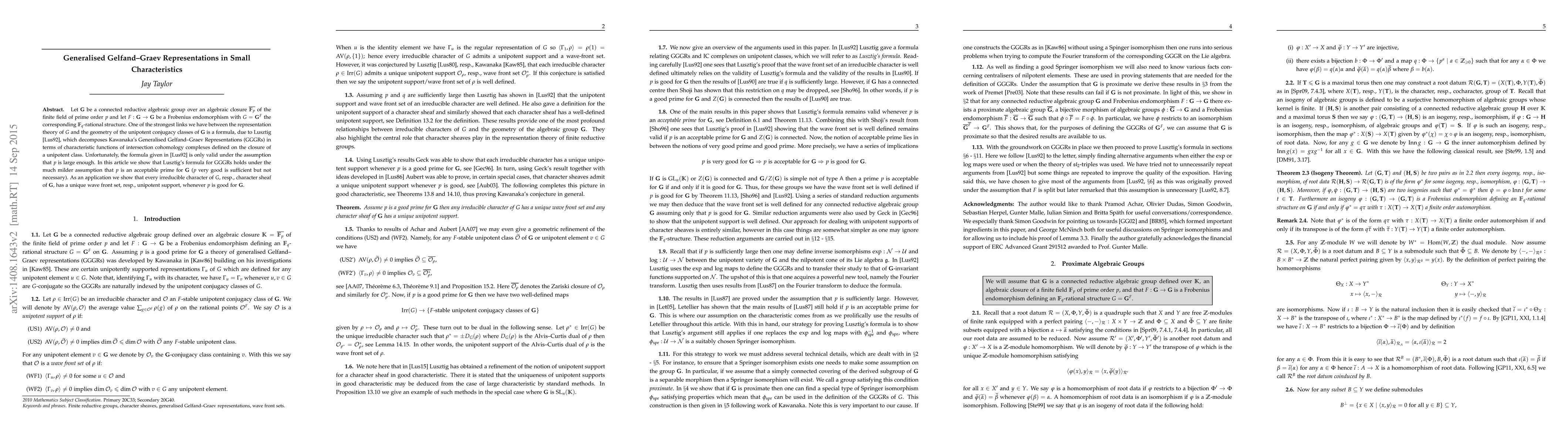 Let $\mathbf{G}$ be a connected reductive algebraic group over an algebraic closure $\overline{\mathbb{F}_p}$ of the finite field of prime order $p$ and let $F : \mathbf{G} \to \mathbf{G}$ be a Frobenius endomorphism with $G = \mathbf{G}^F$ the corresponding $\mathbb{F}_q$-rational structure. One of the strongest links we have between the representation theory of $G$ and the geometry of the unipotent conjugacy classes of $\mathbf{G}$ is a formula, due to Lusztig, which decomposes Kawanaka's Generalised Gelfand-Graev Representations (GGGRs) in terms of characteristic functions of intersection cohomology complexes defined on the closure of a unipotent class. Unfortunately, Lusztig's results are only valid under the assumption that $p$ is large enough. In this article we show that Lusztig's formula for GGGRs holds under the much milder assumption that $p$ is an acceptable prime for $\mathbf{G}$ ($p$ very good is sufficient but not necessary). As an application we show that every irreducible character of $G$, resp., character sheaf of $\mathbf{G}$, has a unique wave front set, resp., unipotent support, whenever $p$ is good for $\mathbf{G}$.