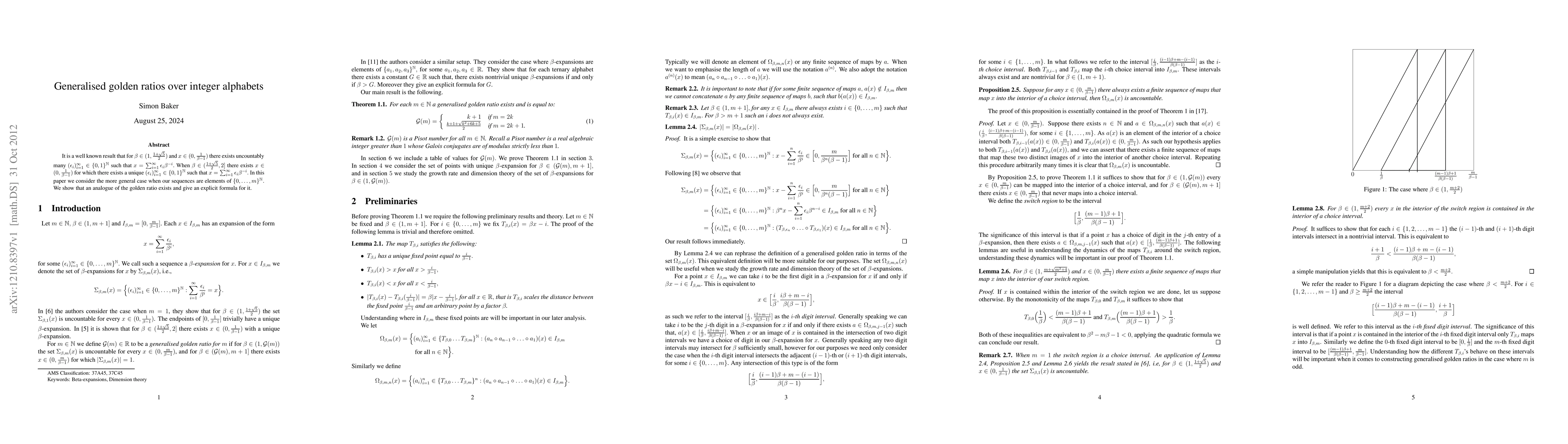 This paper explores generalised golden ratios over integer alphabets beyond binary sequences. It establishes the existence of a unique representation in the form of $\sum_{i=1}^{\infty}\epsilon_{i}\beta^{-i}$ for sequences in ${0,...,m}^{\mathbb{N}}$, providing an explicit formula for this generalised golden ratio.