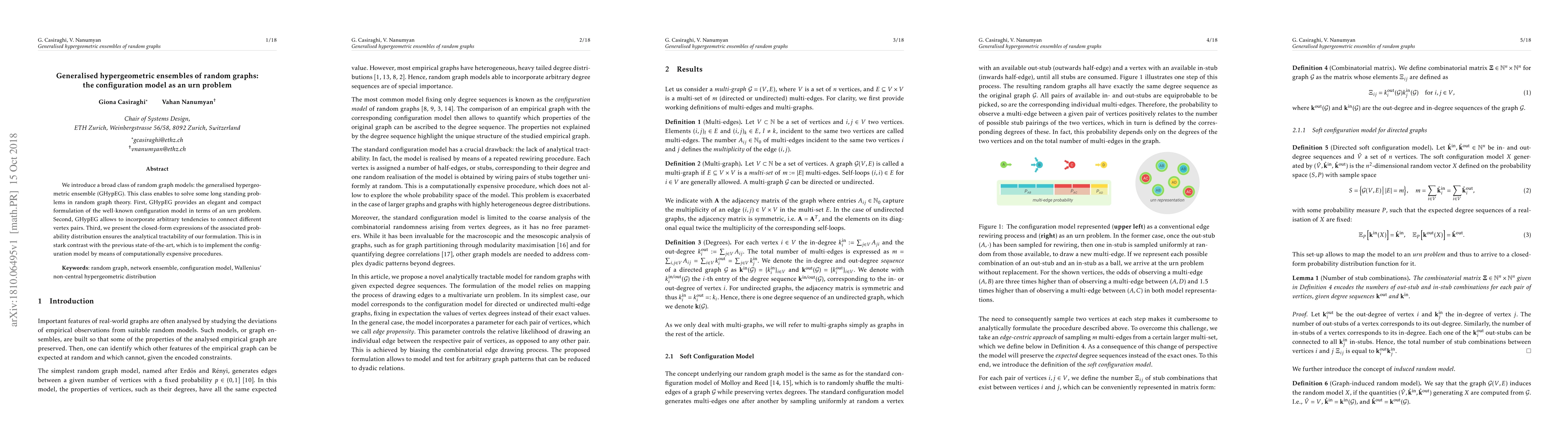 We introduce a broad class of random graph models: the generalised hypergeometric ensemble (GHypEG). This class enables to solve some long standing problems in random graph theory. First, GHypEG provides an elegant and compact formulation of the well-known configuration model in terms of an urn problem. Second, GHypEG allows to incorporate arbitrary tendencies to connect different vertex pairs. Third, we present the closed-form expressions of the associated probability distribution ensures the analytical tractability of our formulation. This is in stark contrast with the previous state-of-the-art, which is to implement the configuration model by means of computationally expensive procedures.