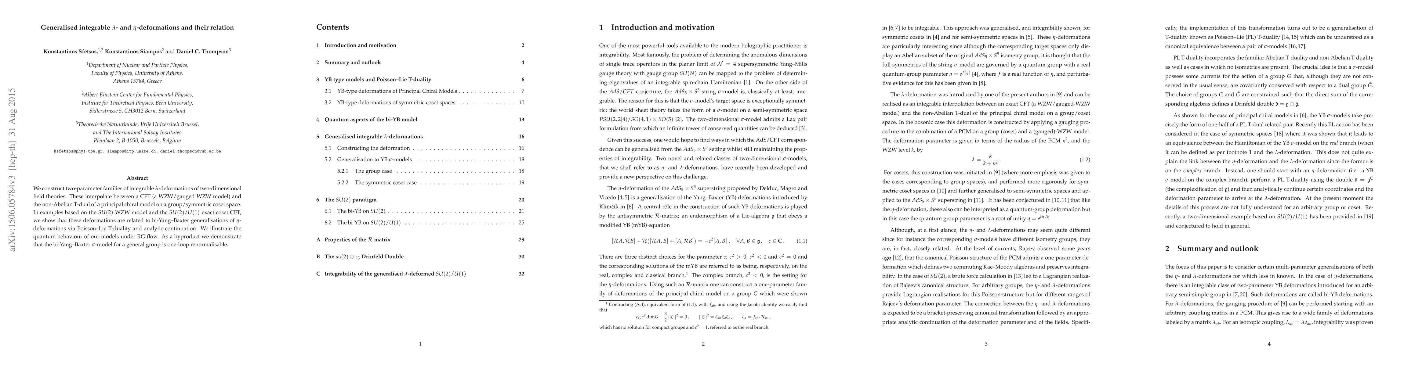 This paper constructs two-parameter integrable $\lambda$-deformations of two-dimensional field theories, linking them to $\eta$-deformations through Poisson-Lie T-duality and demonstrating their one-loop renormalizability. The study uses examples from $SU(2)$ WZW models and $SU(2)/U(1)$ coset CFTs to illustrate the quantum behavior under RG flow.