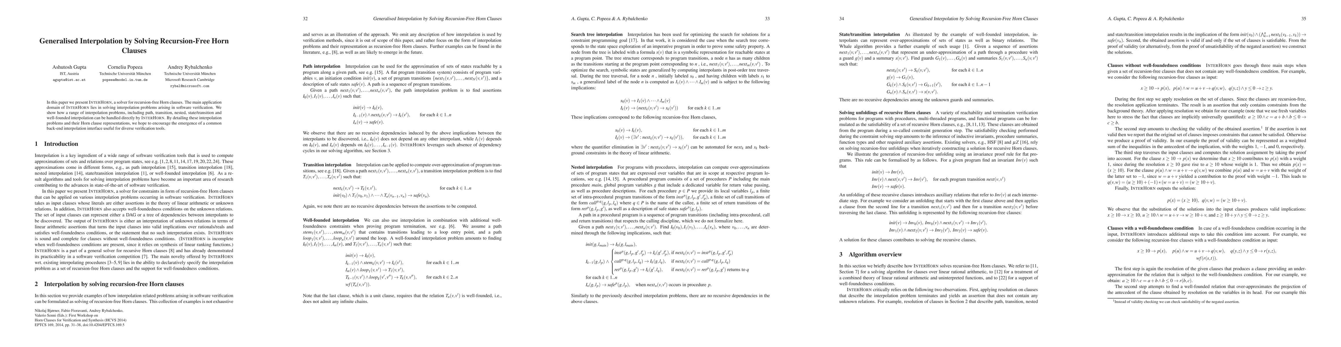 This paper introduces InterHorn, a solver for recursion-free Horn clauses, designed to address various interpolation problems in software verification. The authors demonstrate InterHorn's capability to handle different types of interpolation problems, aiming to foster a unified back-end interpolation interface for verification tools.
