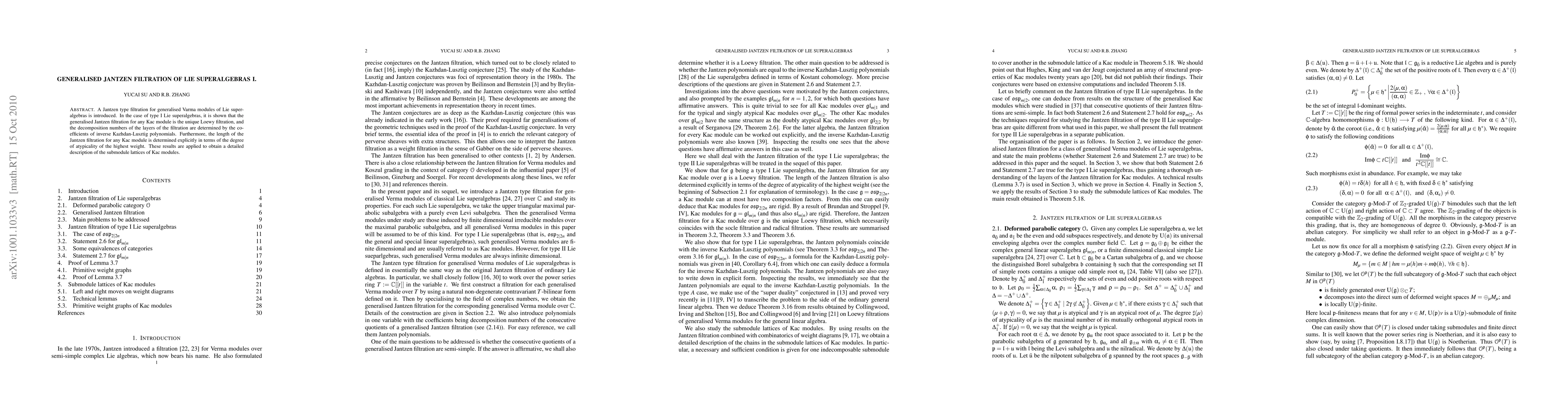The introduction of the generalised Jantzen filtration provides a new tool for studying Kac modules and their submodule lattices.