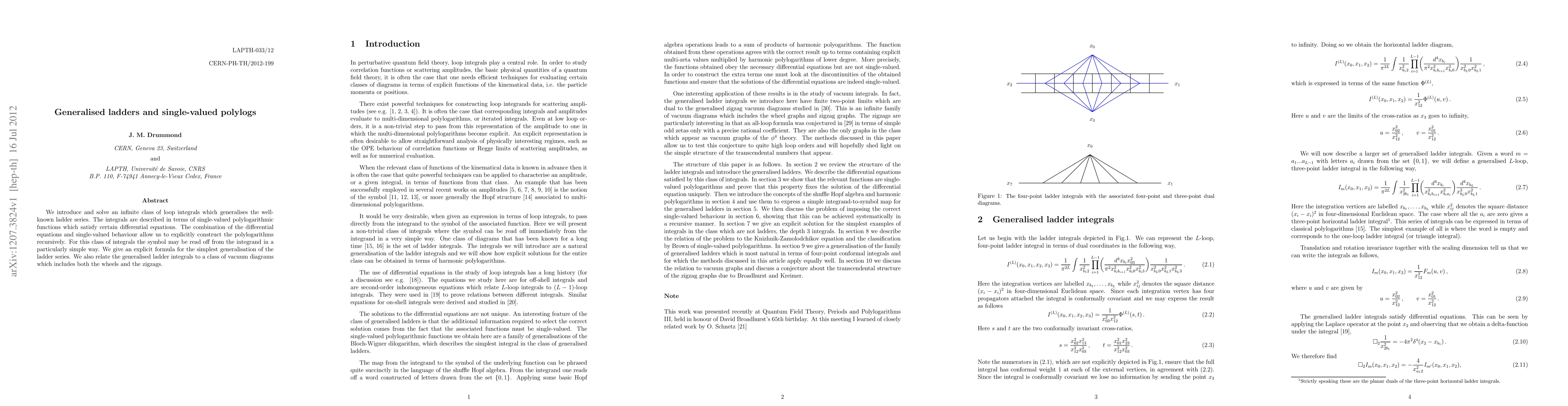 We introduce and solve an infinite class of loop integrals which generalises the well-known ladder series. The integrals are described in terms of single-valued polylogarithmic functions which satisfy certain differential equations. The combination of the differential equations and single-valued behaviour allow us to explicitly construct the polylogarithms recursively. For this class of integrals the symbol may be read off from the integrand in a particularly simple way. We give an explicit formula for the simplest generalisation of the ladder series. We also relate the generalised ladder integrals to a class of vacuum diagrams which includes both the wheels and the zigzags.