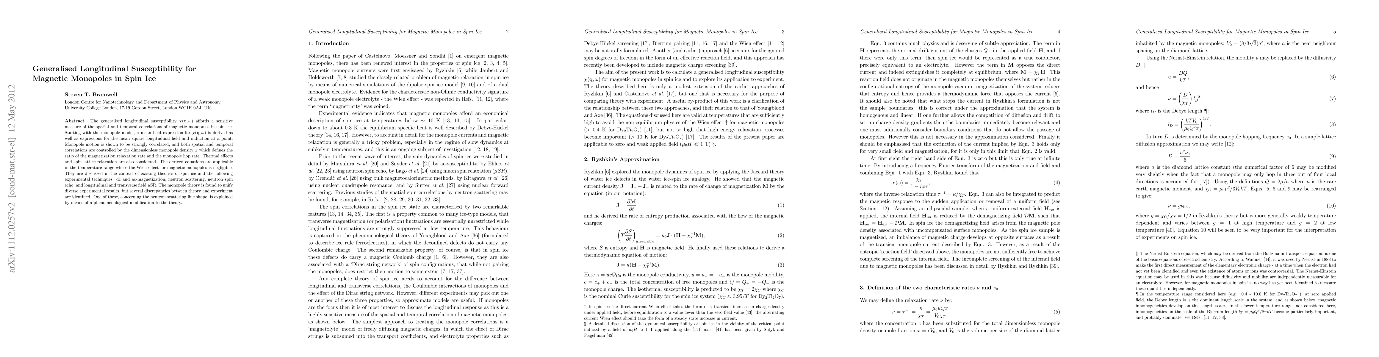 The generalised longitudinal susceptibility $\chi({\bf q}, \omega)$ affords a sensitive measure of the spatial and temporal correlations of magnetic monopoles in spin ice. Starting with the monopole model, a mean field expression for $\chi({\bf q}, \omega)$ is derived as well as expressions for the mean square longitudinal field and induction at a point. Monopole motion is shown to be strongly correlated, and both spatial and temporal correlations are controlled by the dimensionless monopole density $x$ which defines the ratio of the magnetization relaxation rate and the monopole hop rate. Thermal effects and spin lattice relaxation are also considered. The derived equations are applicable in the temperature range where the Wien effect for magnetic monopoles is negligible. They are discussed in the context of existing theories of spin ice and the following experimental techniques: dc and ac-magnetization, neutron scattering, neutron spin echo, and longitudinal and transverse field $\mu$SR. The monopole theory is found to unify diverse experimental results, but several discrepancies between theory and experiment are identified. One of these, concerning the neutron scattering line shape, is explained by means of a phenomenological modification to the theory.