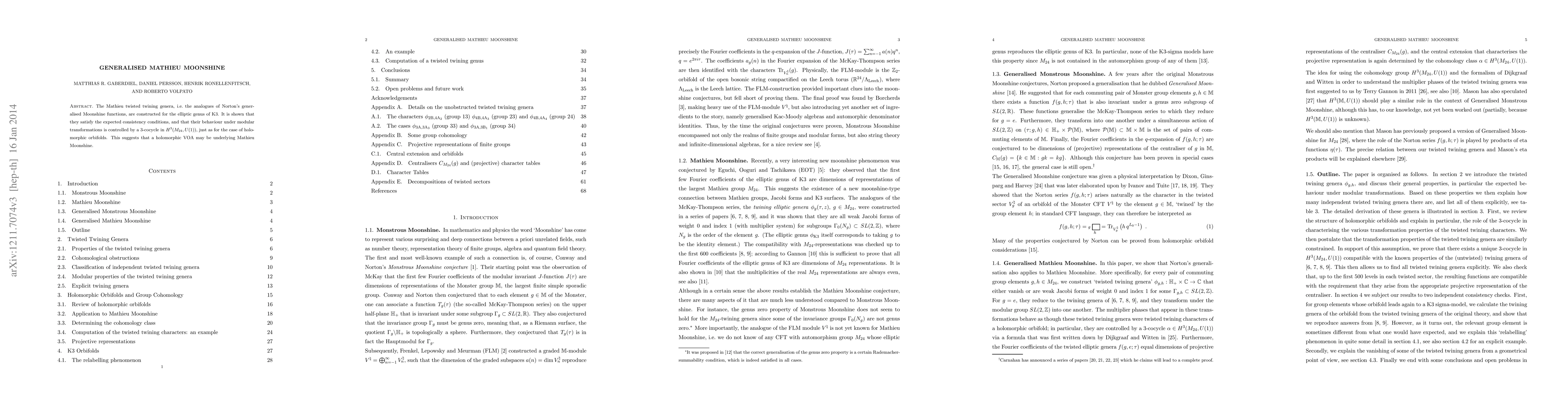Summary: This paper constructs the Mathieu twisted twining genera for the elliptic genus of K3, demonstrating their consistency and showing they are governed by a 3-cocycle in H^3(M_24,U(1)), suggesting a holomorphic VOA underpins the generalised Mathieu Moonshine.