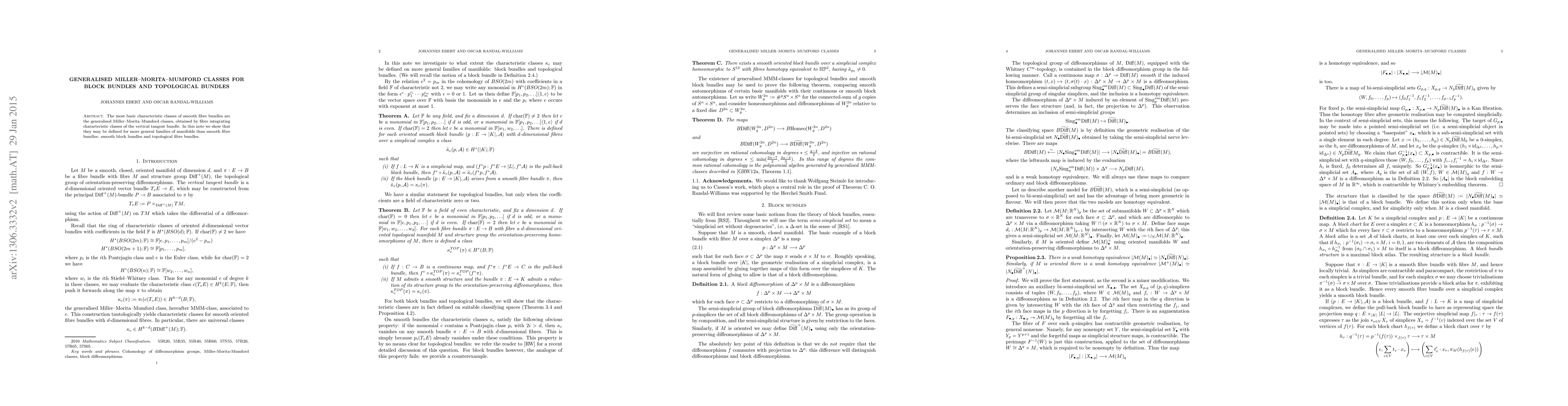 Summary: This paper extends the definition of generalised Miller-Morita-Mumford classes to smooth block bundles and topological fibre bundles, beyond their traditional application to smooth fibre bundles. The classes are obtained by integrating characteristic classes of the vertical tangent bundle.