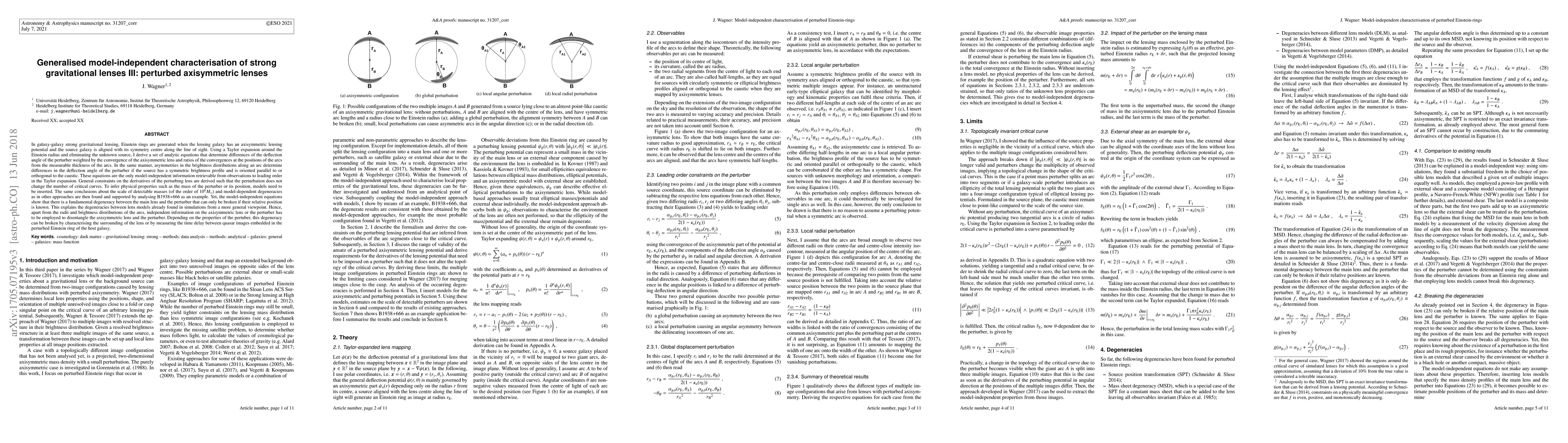 In galaxy-galaxy strong gravitational lensing, Einstein rings are generated when the lensing galaxy has an axisymmetric lensing potential and the source galaxy is aligned with its symmetry centre along the line of sight. Using a Taylor expansion around the Einstein radius and eliminating the unknown source, I derive a set of analytic equations that determine differences of the deflection angle of the perturber weighted by the convergence of the axisymmetric lens and ratios of the convergences at the positions of the arcs from the measurable thickness of the arcs. In the same manner, asymmetries in the brightness distributions along an arc determine differences in the deflection angle of the perturber if the source has a symmetric brightness profile and is oriented parallel to or orthogonal to the caustic. These equations are the only model-independent information retrievable from observations to leading order in the Taylor expansion. General constraints on the derivatives of the perturbing lens are derived such that the perturbation does not change the number of critical curves. To infer physical properties such as the mass of the perturber or its position, models need to be inserted. The same conclusions about the scale of detectable masses and model-dependent degeneracies as in other approaches are then found and supported by analysing B1938 as an example. Yet, the model-independent equations show that there is a fundamental degeneracy between the main lens and the perturber that can only be broken if their relative position is known. This explains the degeneracies between lens models already found in simulations from a more general viewpoint. Depending on the properties of the pertuber, this degeneracy can be broken by characterising the surrounding of the lens or by measuring the time delay between quasar images embedded in the perturbed Einstein ring of the host galaxy.