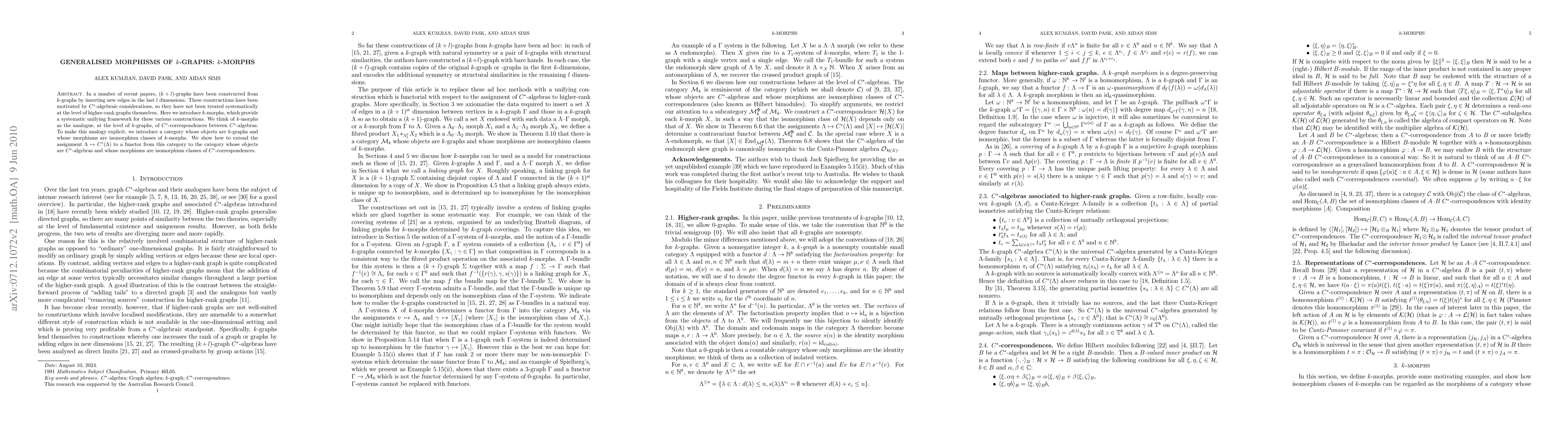 This paper introduces k-morphs as a unifying framework for constructing (k+l)-graphs from k-graphs, analogous to C*-correspondences between C*-algebras. It establishes a category of k-graphs and k-morphs, and extends the functor from k-graphs to C*-algebras to include k-morphs.