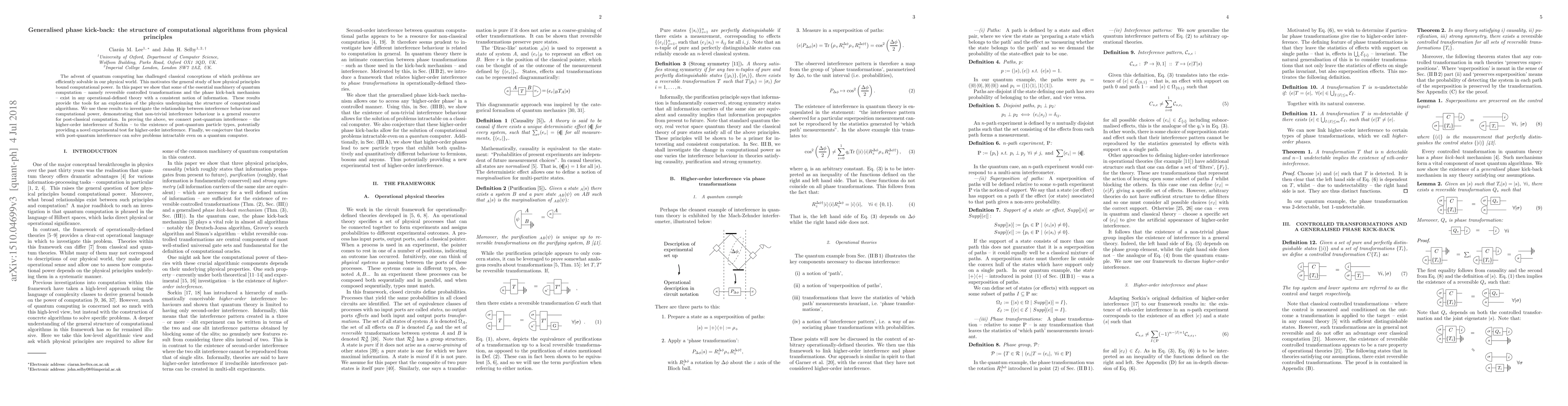 The advent of quantum computing has challenged classical conceptions of which problems are efficiently solvable in our physical world. This motivates the general study of how physical principles bound computational power. In this paper we show that some of the essential machinery of quantum computation -- namely reversible controlled transformations and the phase kick-back mechanism -- exist in any operational-defined theory with a consistent notion of information. These results provide the tools for an exploration of the physics underpinning the structure of computational algorithms. We use these results to investigate the relationship between interference behaviour and computational power, demonstrating that non-trivial interference behaviour is a general resource for post-classical computation. In proving the above, we connect post-quantum interference -- the higher-order interference of Sorkin -- to the existence of post-quantum particle types, potentially providing a novel experimental test for higher-order interference. Finally, we conjecture that theories with post-quantum interference can solve problems intractable even on a quantum computer.