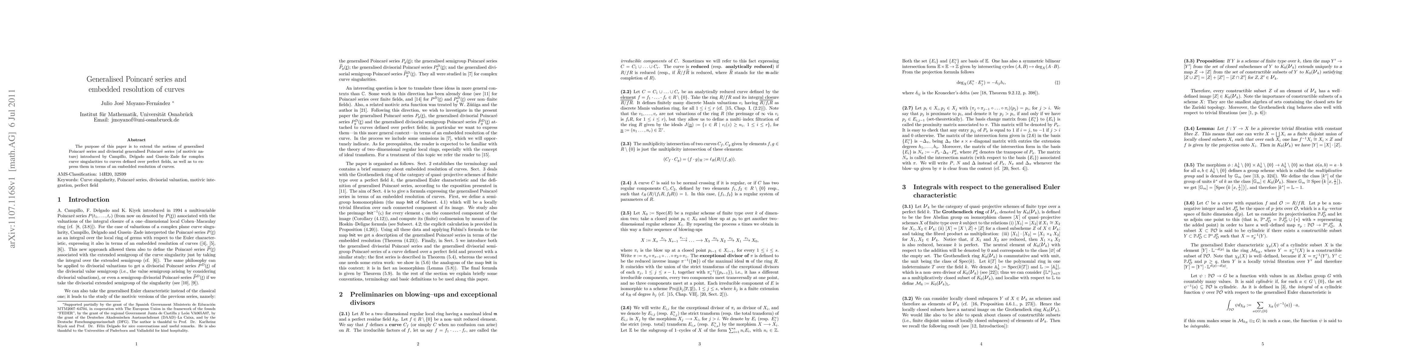 This paper extends the generalised Poincaré series and divisorial generalised Poincaré series for complex curve singularities to curves over perfect fields and relates them to embedded resolutions of the curves.