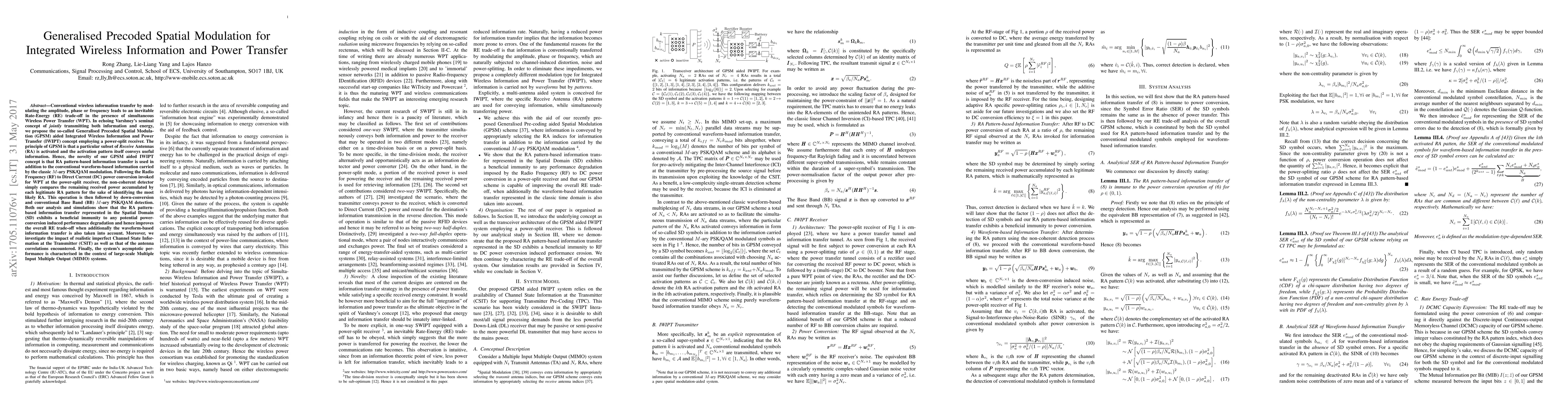 Conventional wireless information transfer by modulating the amplitude, phase or frequency leads to an inevitable Rate-Energy (RE) trade-off in the presence of simultaneous Wireless Power Transfer (WPT). In echoing Varshney's seminal concept of jointly transmitting both information and energy, we propose the so-called Generalised Precoded Spatial Modulation (GPSM) aided Integrated Wireless Information and Power Transfer (IWIPT) concept employing a power-split receiver. The principle of GPSM is that a particular subset of Receive Antennas (RA) is activated and the activation pattern itself conveys useful information. Hence, the novelty of our GPSM aided IWIPT concept is that RA pattern-based information transfer is used in addition to the conventional waveform-based information carried by the classic M-ary modulation. Following the Radio Frequency (RF) to Direct Current (DC) power conversion invoked for WPT at the power-split receiver, the non-coherent detector simply compares the remaining received power accumulated by each legitimate RA pattern for the sake of identifying the most likely RA. This operation is then followed by down-conversion and conventional Base Band (BB) M-ary detection. Both our analysis and simulations show that the RA pattern based information transfer represented in the Spatial Domain (SD) exhibits a beneficial immunity to any potential power conversion induced performance degradation and hence improves the overall RE trade-off when additionally the waveform-based information transfer is also taken into account. Moreover, we investigate the impact of realistic imperfect Channel State Information at the Transmitter (CSIT) as well as that of the antenna correlations encountered. Finally, the system's asymptotic performance is characterised in the context of large-scale Multiple Input Multiple Output (MIMO) systems.